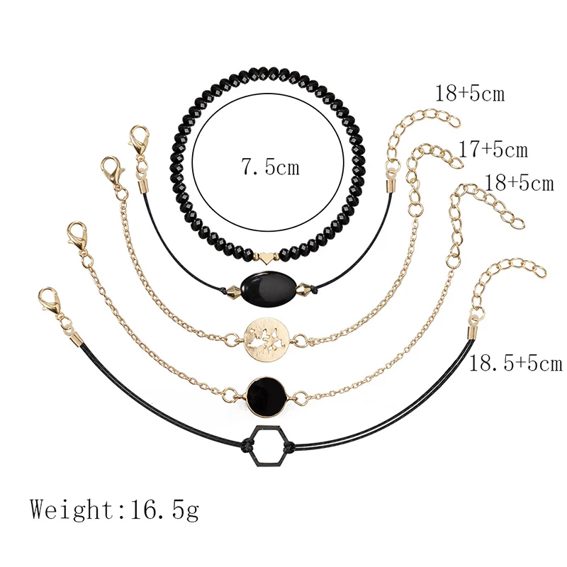 Modyle 5 шт в готическом стиле, черные сандалии, украшенные перьями лотоса браслеты комплект ювелирных изделий Сердце Браслеты с подвесками в стиле бохо, браслеты для женщин, цепочка на запястье браслеты ювелирные изделия
