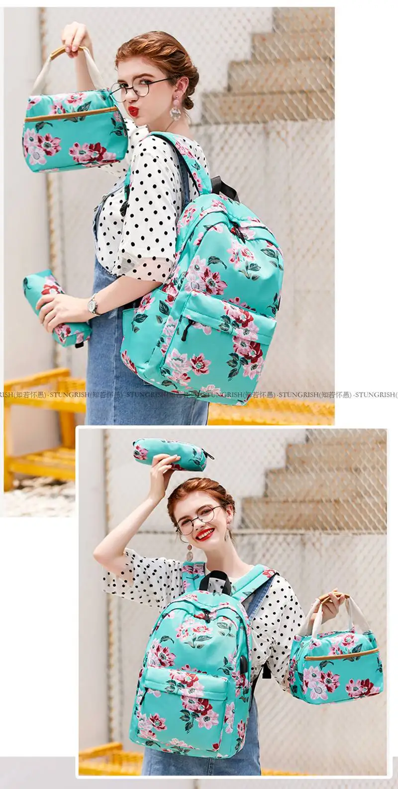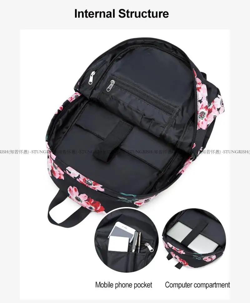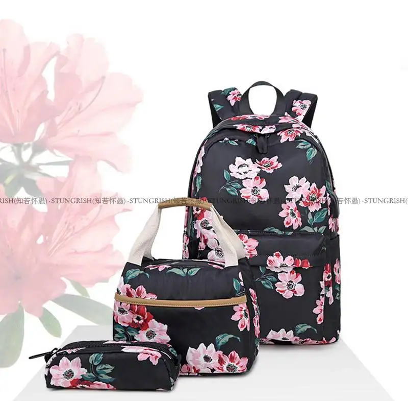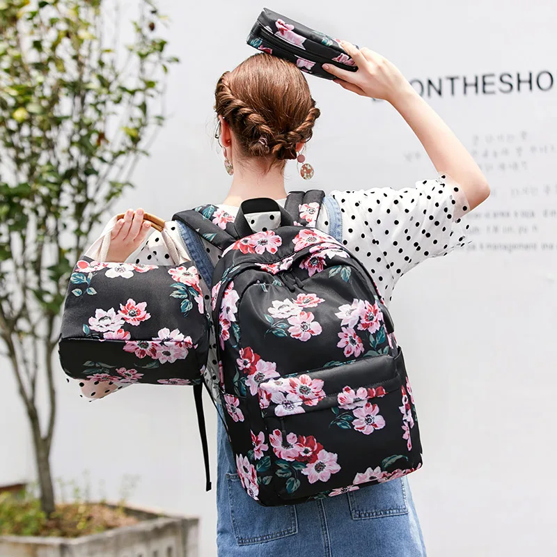 Школьный рюкзак для подростков, набор женских и женских школьных сумок, легкий водонепроницаемый нейлоновый дорожный Цветочный Рюкзак для детей, повседневный рюкзак