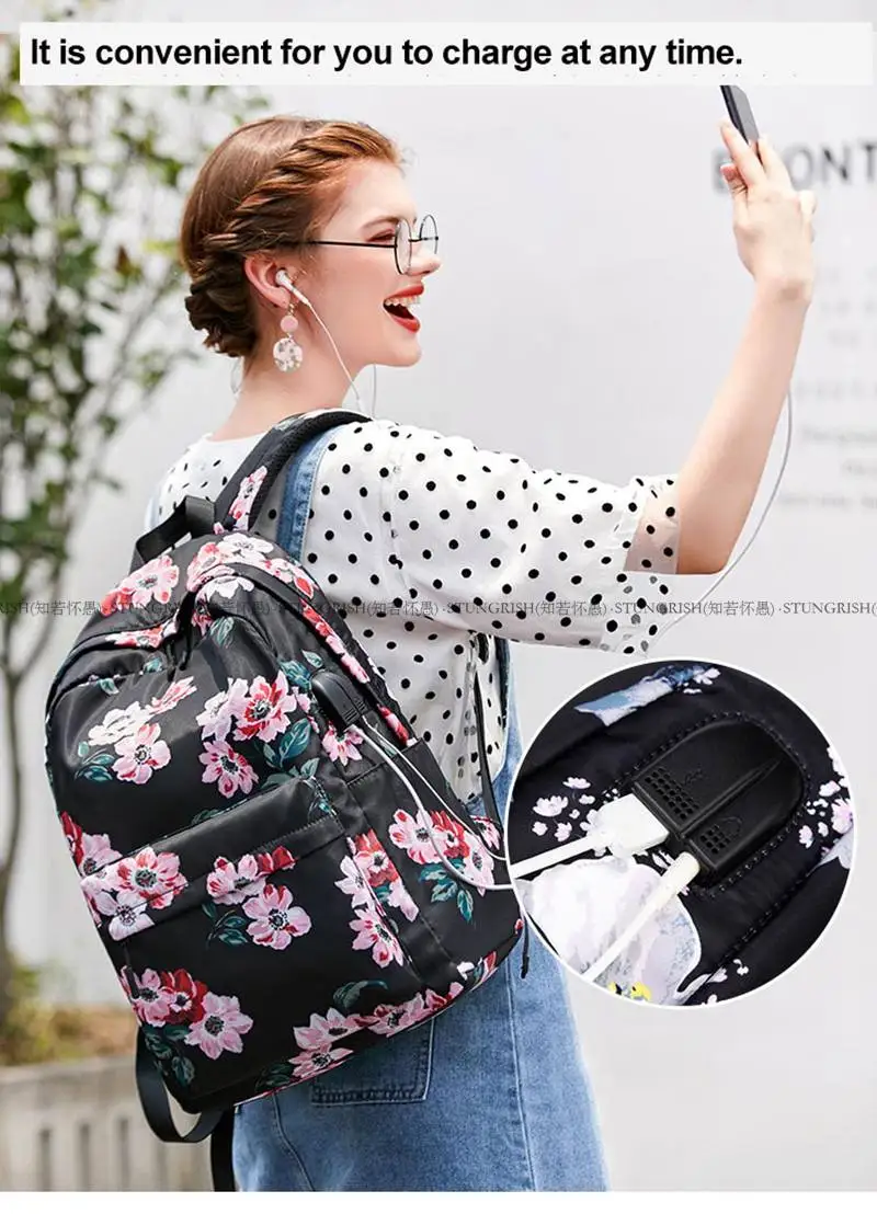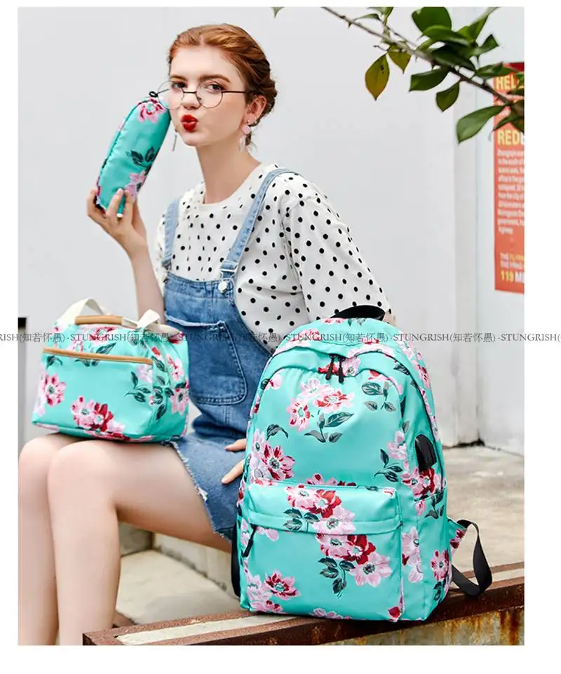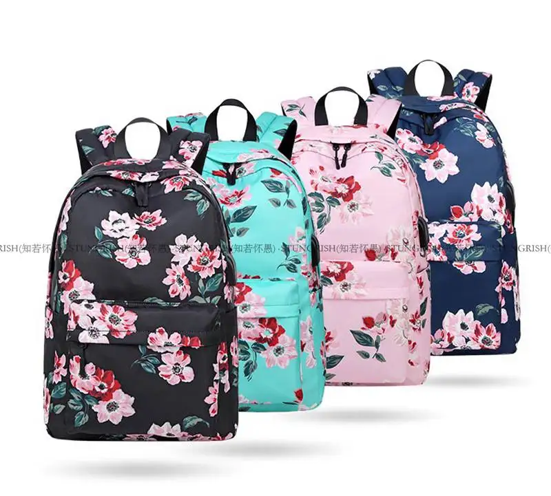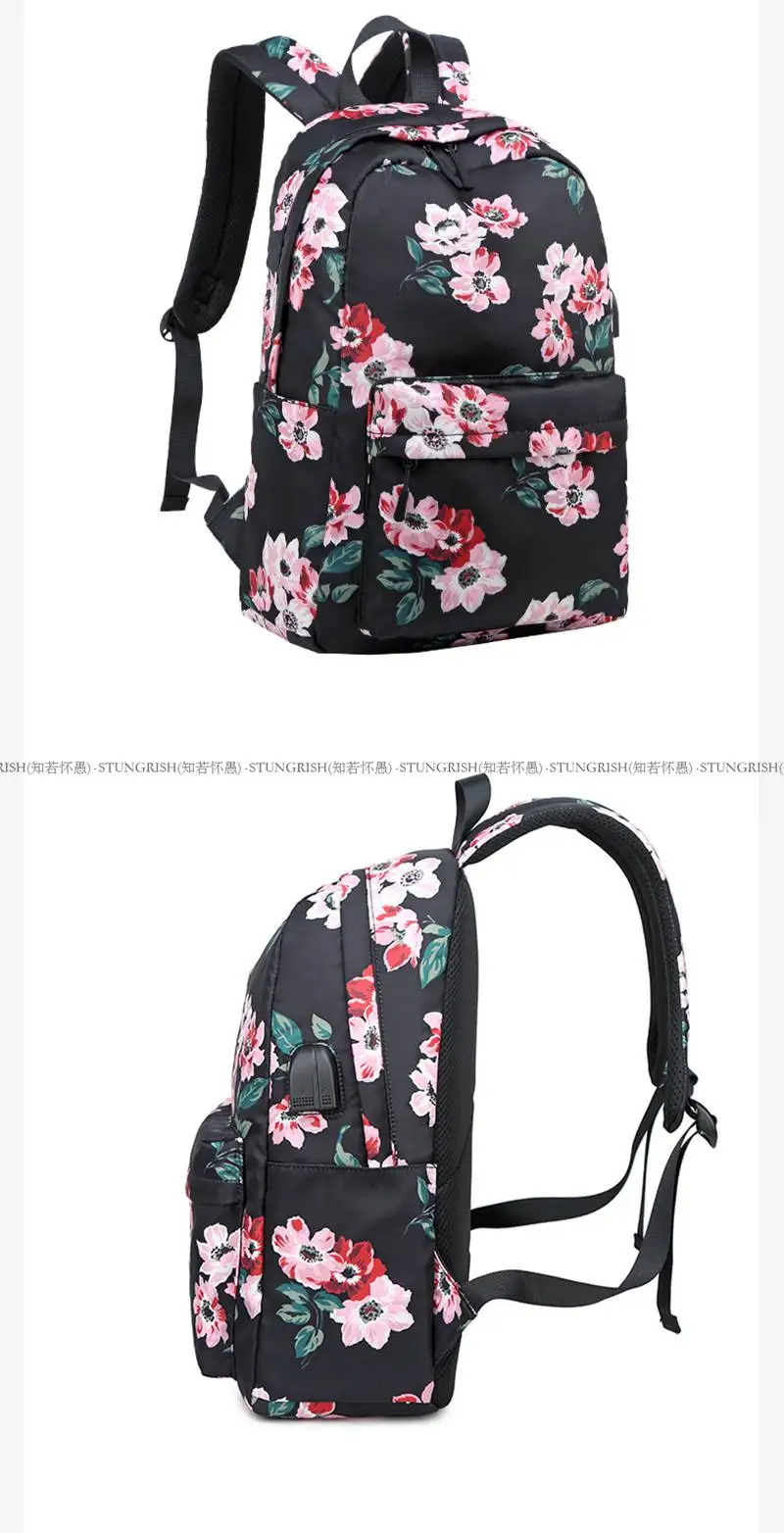 Школьный рюкзак для подростков, набор женских и женских школьных сумок, легкий водонепроницаемый нейлоновый дорожный Цветочный Рюкзак для детей, повседневный рюкзак
