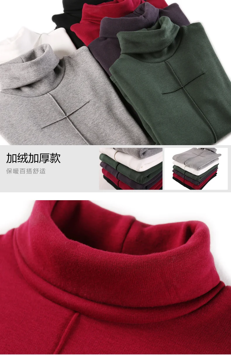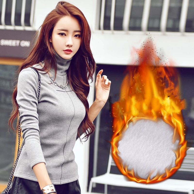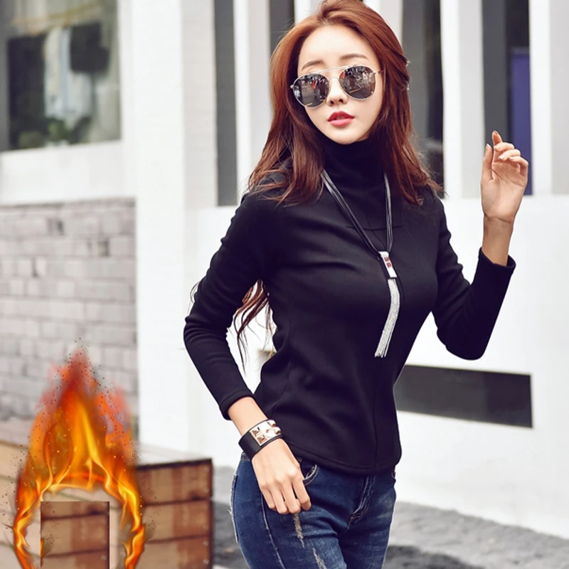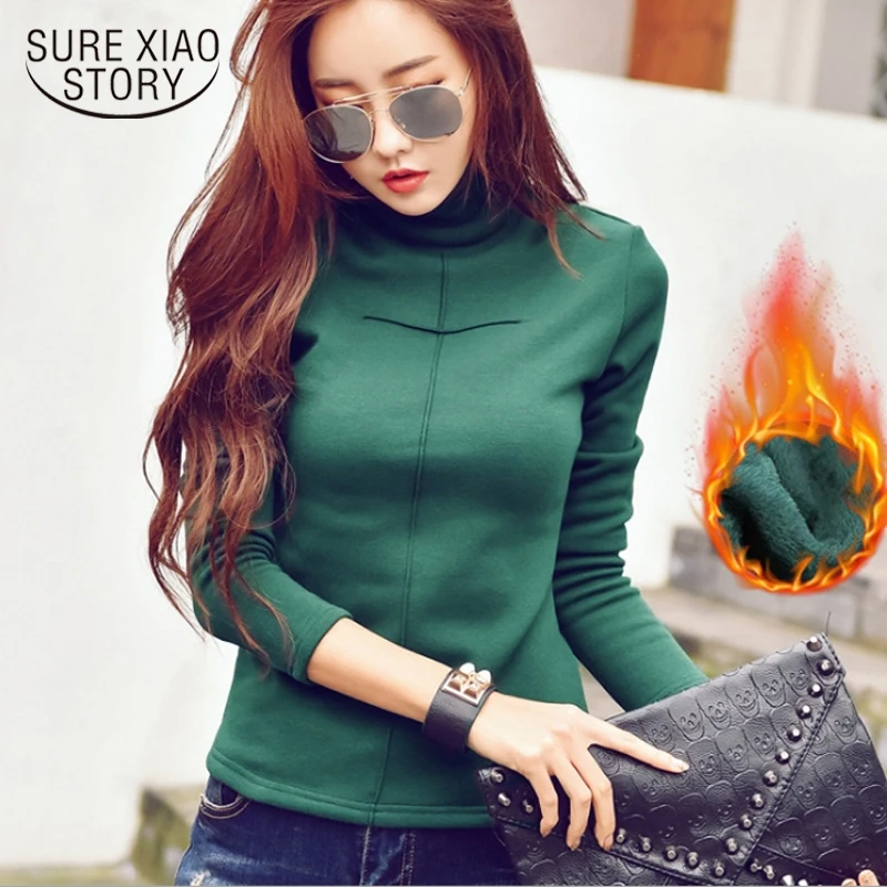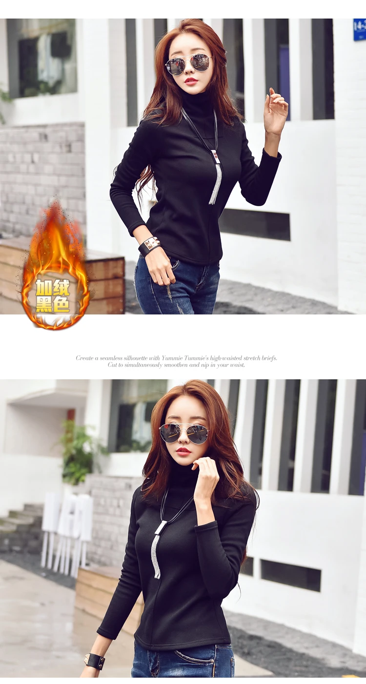 Размера плюс, S-3XL, осенне-зимняя футболка, плотная водолазка, Женские флисовые хлопковые топы с длинным рукавом, женские футболки, 7858, 50