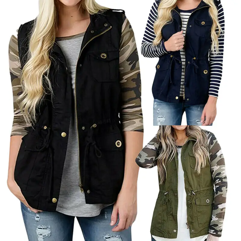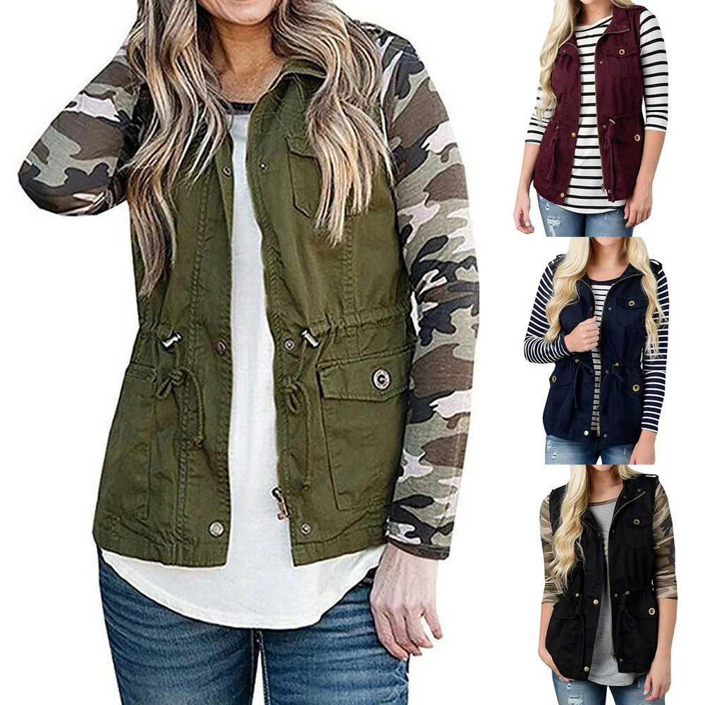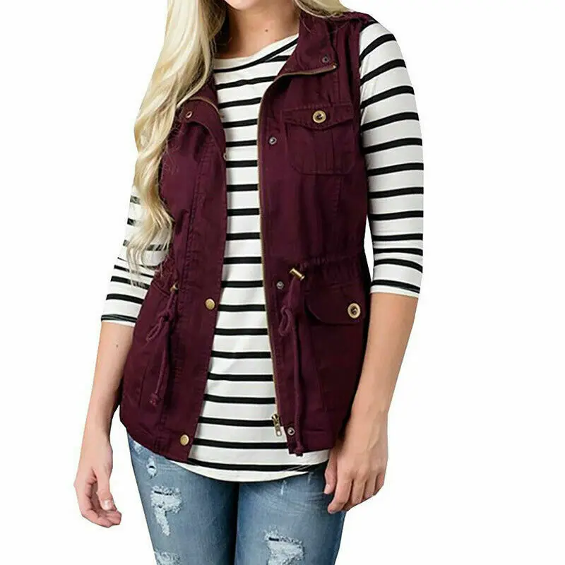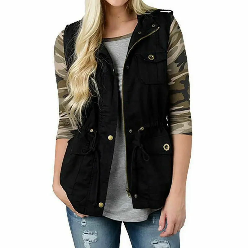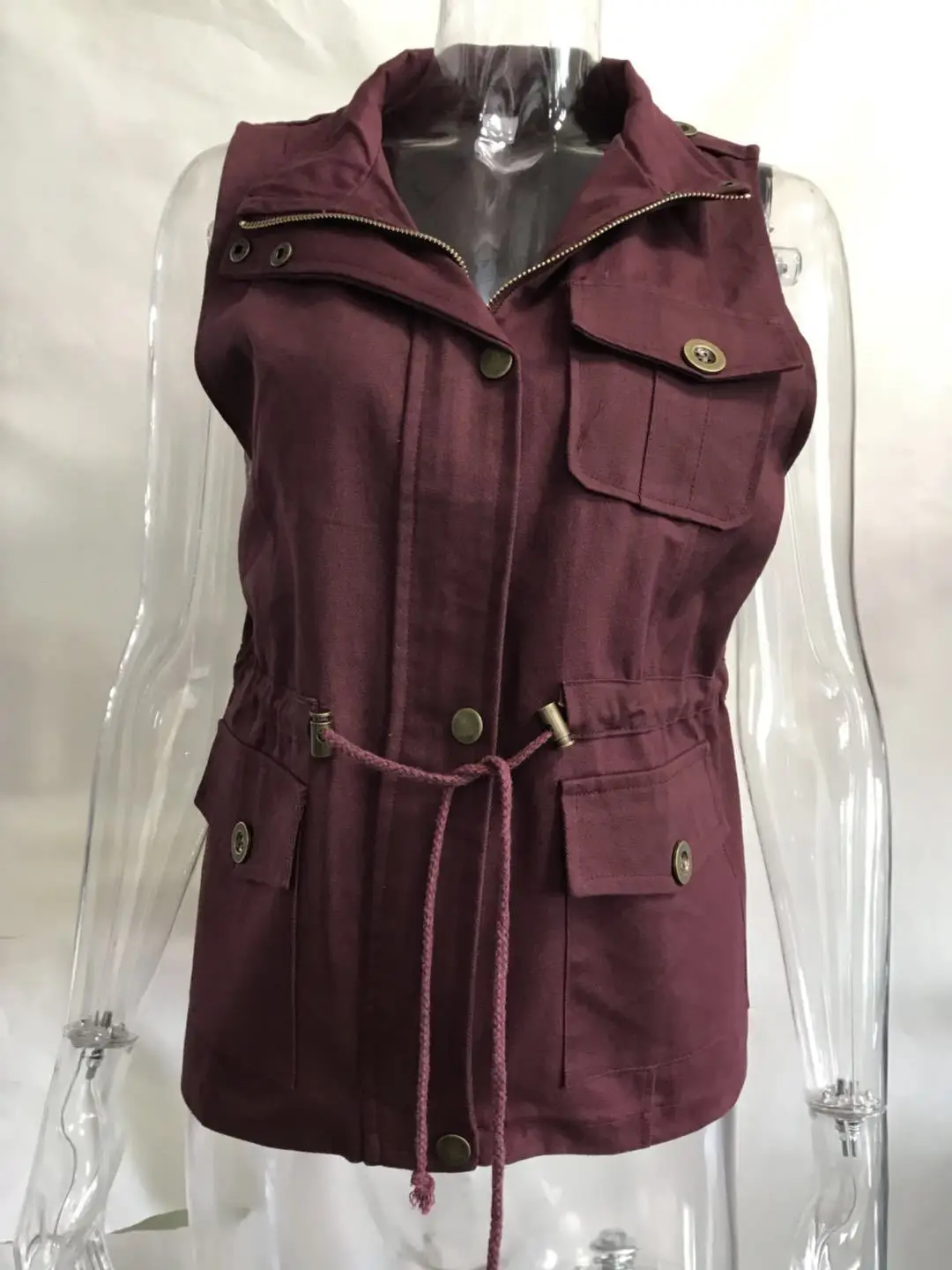 Женский жилет-карго, осенняя Повседневная Верхняя одежда, походные жилеты, куртки-бомберы, Однотонный женский жилет с карманами и поясом на шнурке