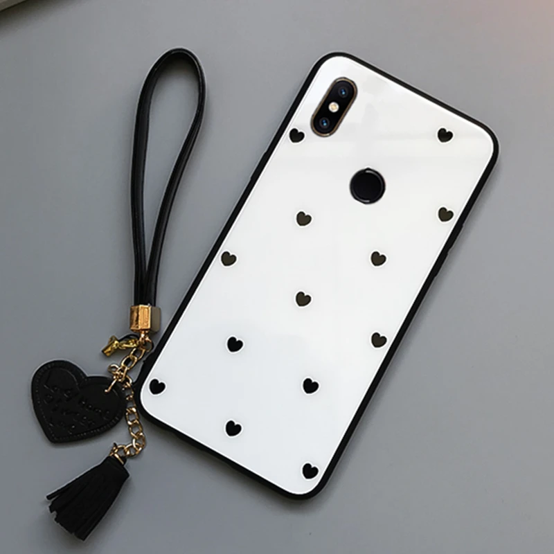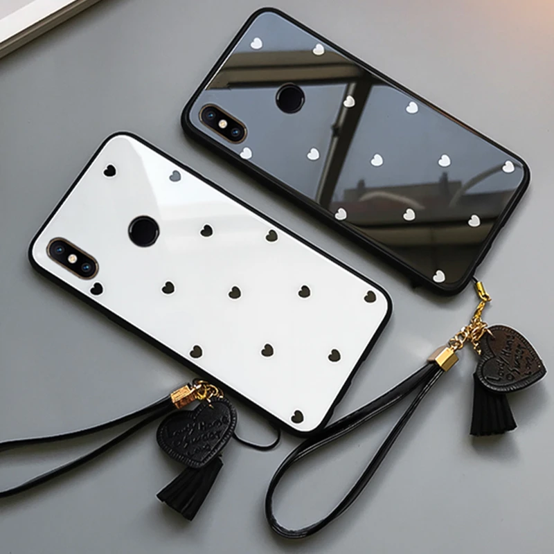 Чехол для Xiaomi Redmi Note 9 Pro Max S2 6A 8 Pro 4X, закаленное стекло, задняя крышка с сердечками, с кисточками и ремешком для Redmi Note 10 Pro 4G