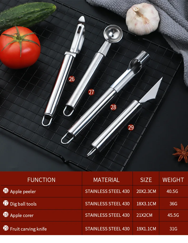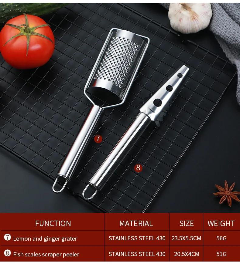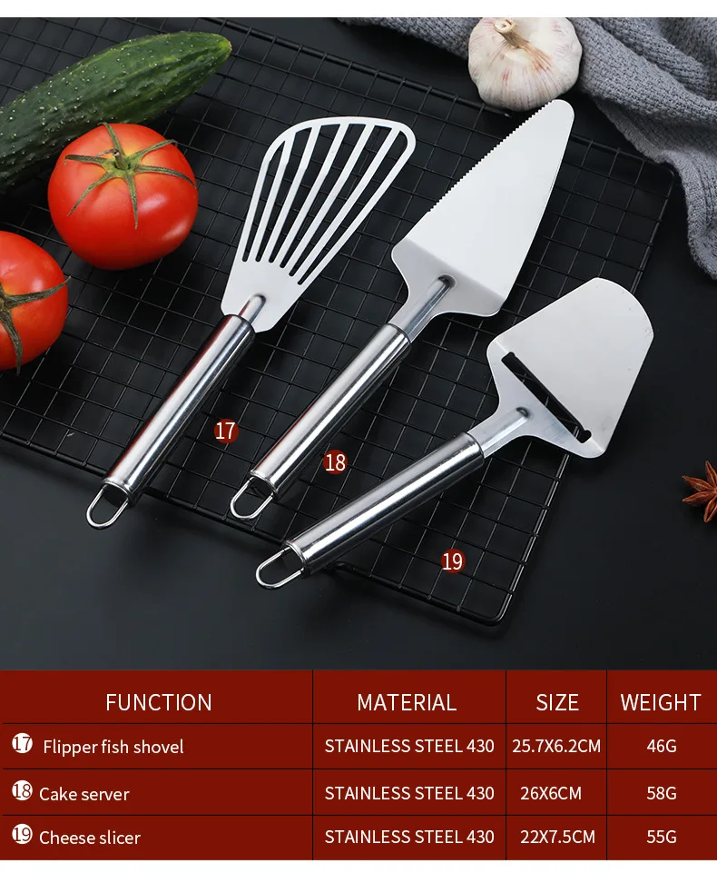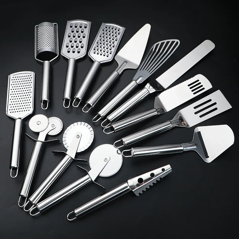 Кухонная утварь из нержавеющей стали, инструмент для выпечки, пиццы, ложка, терка, пресс для чеснока, нож для сыра, большая вилка, венчик
