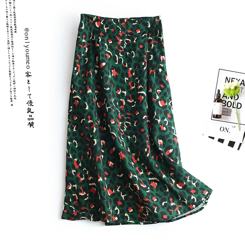 Женская длинная юбка, зеленая трапециевидная юбка с высокой талией и разрезом, 2021