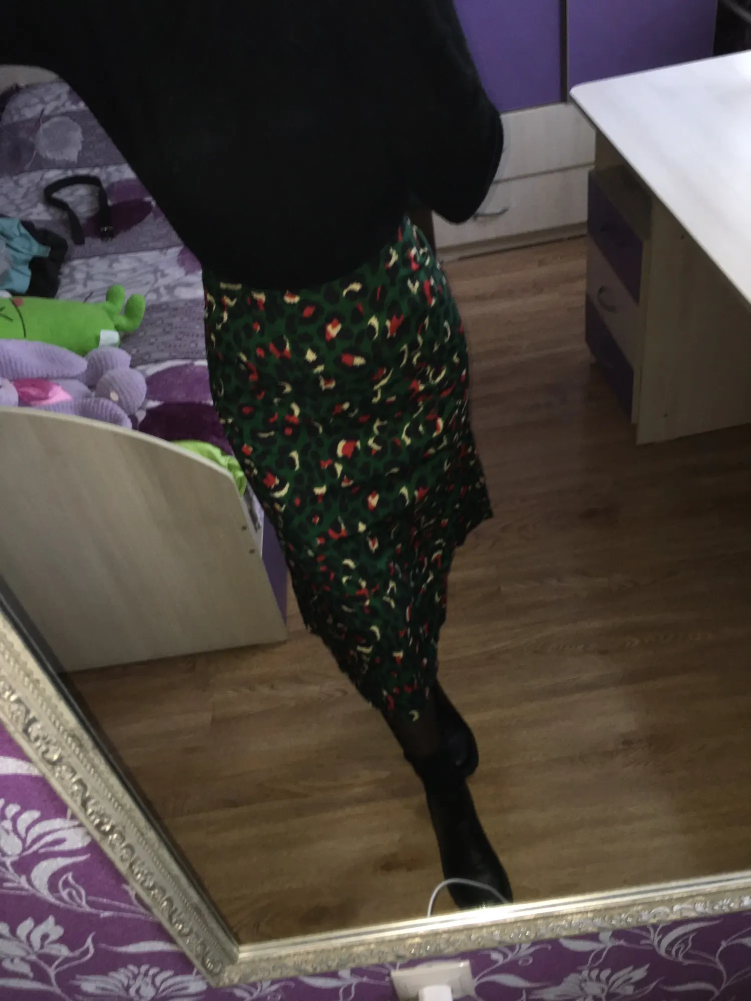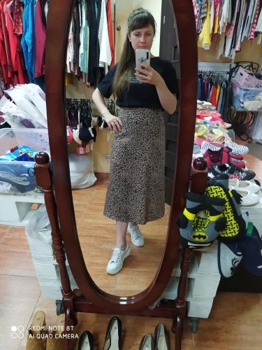 Юбка из скользкого синтетического материала, на ощупь не приятная. Начиталась отзывов, и заказала размер s, оказалась мала мне, хотя я ношу s или xs всегда. Придется перешивать, только не уверена что буду носить, вообщем пока лежит в пакете, я ее так ждала( Большой плюс, что юбка пришла быстрее даже заявленной доставки.