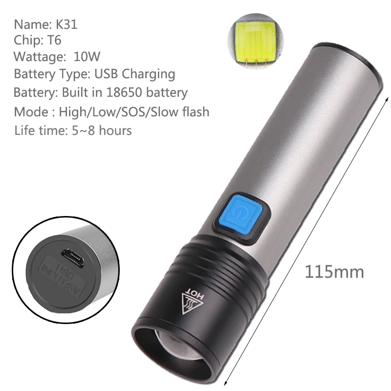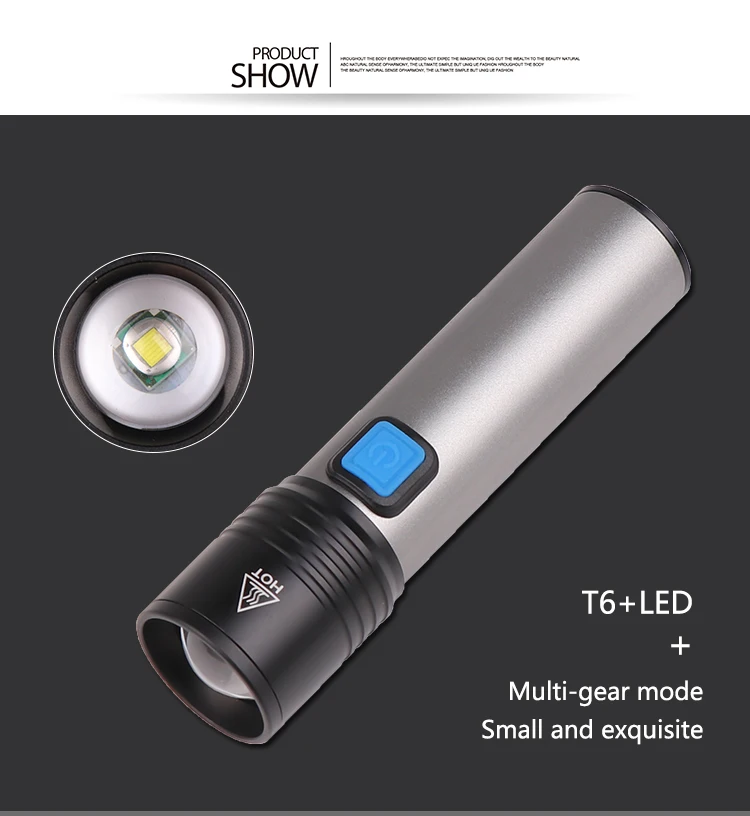 Мини-ффонарь со светодиодный енным аккумулятором 18650, 4 режима