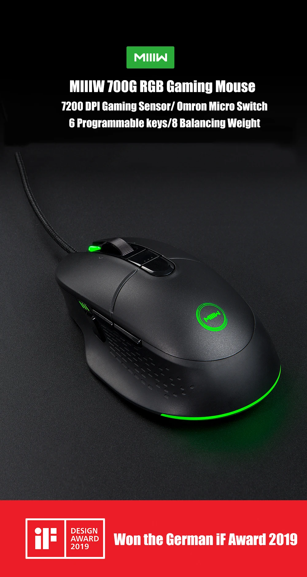 Игровая мышь MIIIW, проводная, 700 ГГц, 1000 ГГц, 6 кнопок, 7200DPI