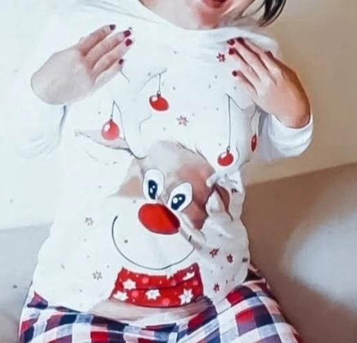 Семейный Рождественский пижамный комплект 2021, Новогодняя Рождественская одежда, топ с оленем для отца, мамы и меня, красные клетчатые брюки, женская одежда