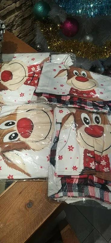 Pijama bonito y suave. Es de licra y vienen grandecitos, pero no me importa ya que me gustan los pijamas amplios. El de niño de 4 años viene grandecito, a mi hija le estará grande pero bueno, así lo usará también el año que viene! contenta con la compra. El envío llegó en el tiempo prometido.