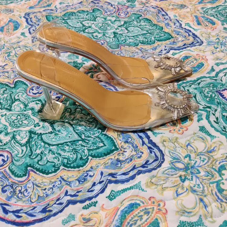 Босоножки женские прозрачные, элегантные туфли на высоком каблуке, с кристаллами, пикантные вечерние Клубные туфли под костюм, лето