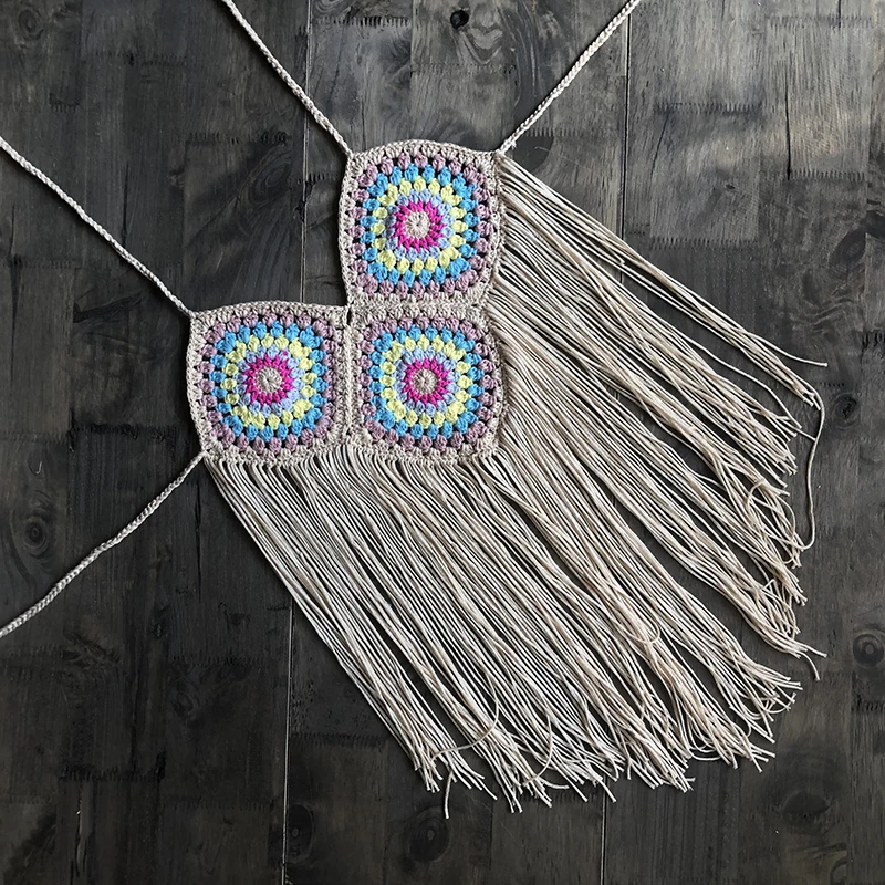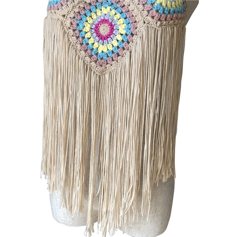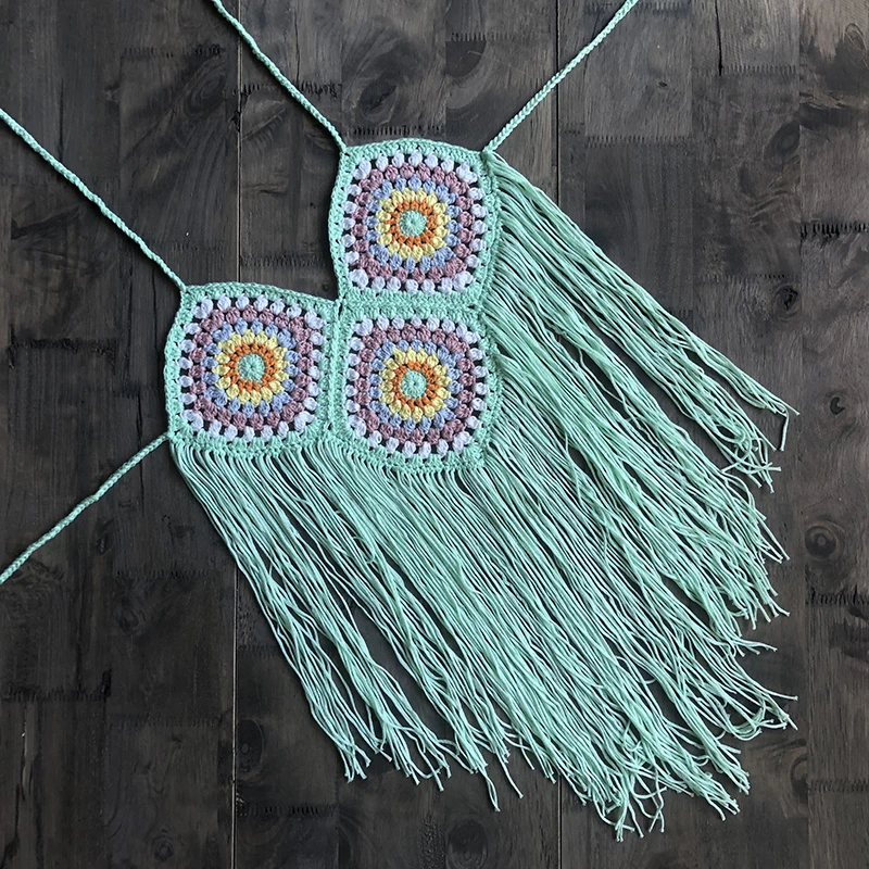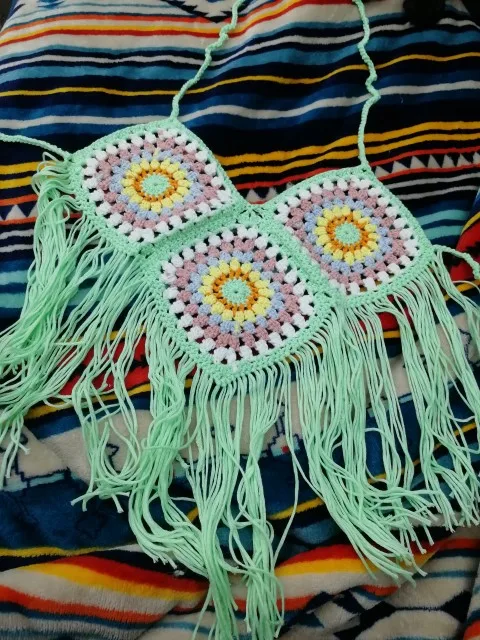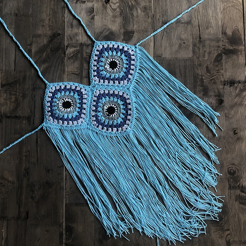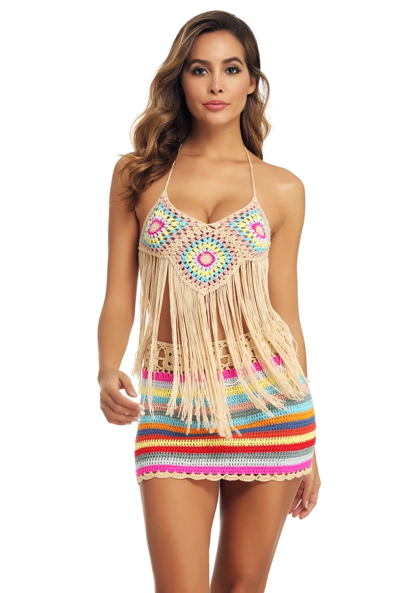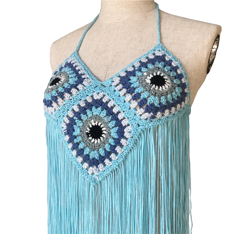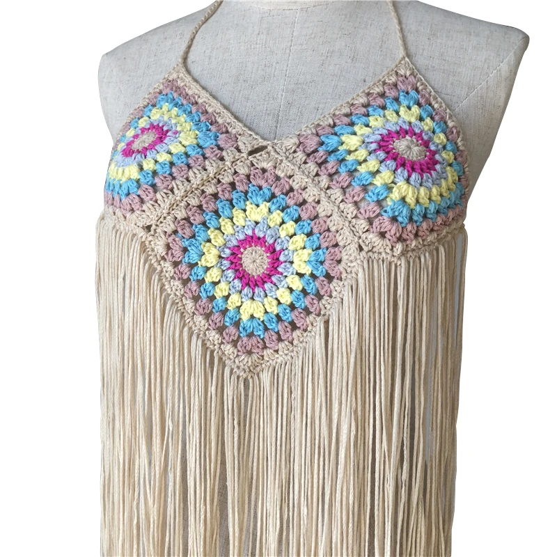 Женское вязаное крючком бикини с кисточками, облегающее бикини, топ, купальник, топы, богемный купальник, сексуальное вязаное крючком бикини ручной работы, хлопковый топ