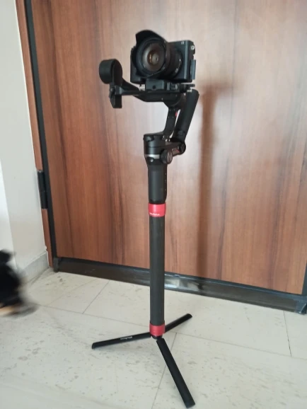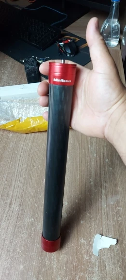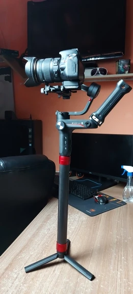 Очень легкий, по виду карбон, единственная претензия - коротковат конектор, всего 3 витка, надеюсь, не подведет, камеру на гимбале ронять не хочется