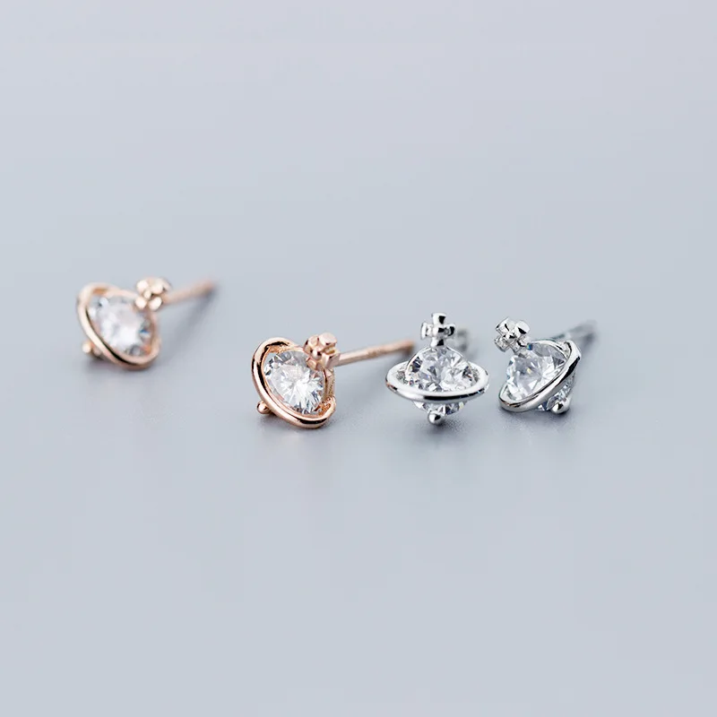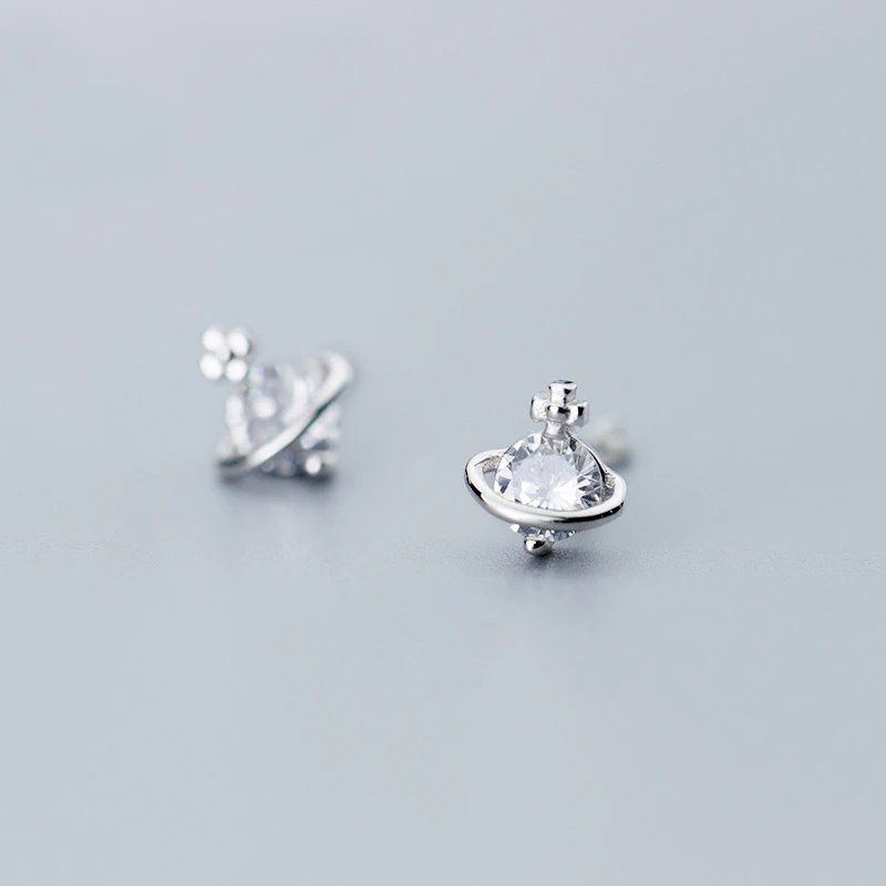 Женские серьги-гвоздики MloveAcc, из серебра 925 пробы, с фианитами серьги-гвоздики "Планета"