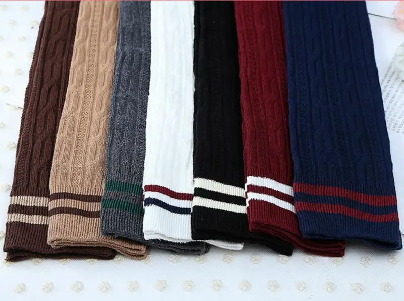 Женские трикотажные хлопковые чулки выше колена, полосатые чулки до бедра, осенняя одежда