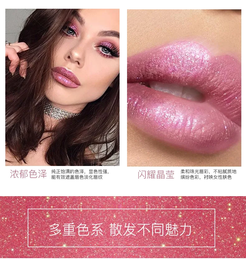 1 шт. пикантная розовая Мерцающая блестящая губная помада, Матовая ...