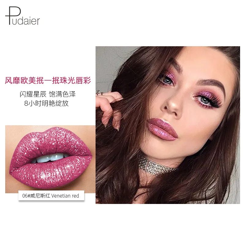 Pudaier делает глоток блестящего матового жемчужного блеска для губ, без прикосновения алмазного блеска для губ