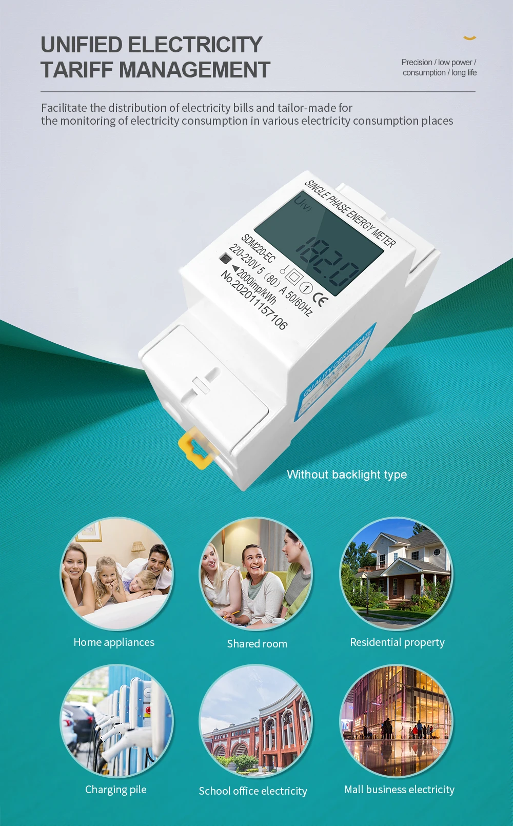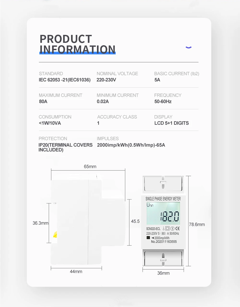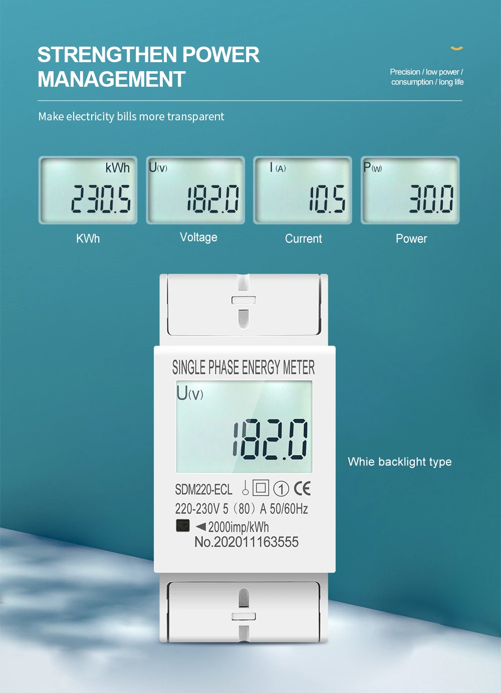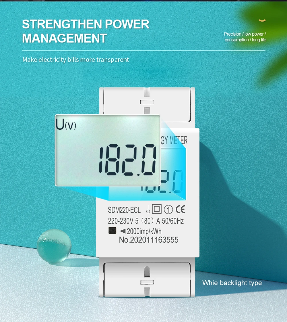 80A din-рейка, однофазный двухпроводной ЖК-цифровой дисплей, потребляемая мощность, Электрический метр кВтч, переменный ток 220 в 230 В 50 Гц60 Гц