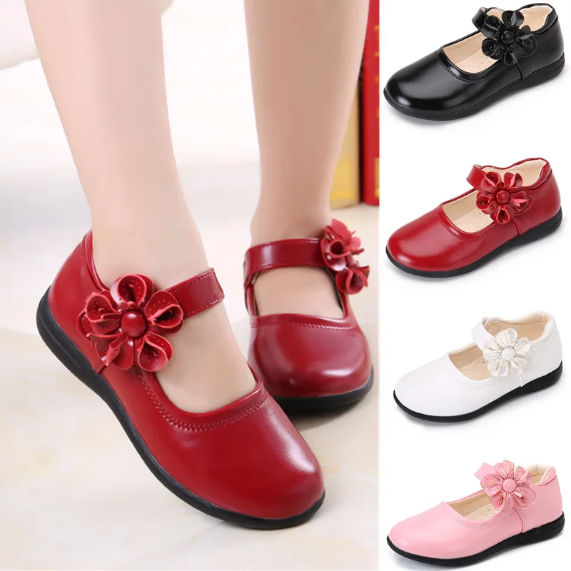 Новинка 2020, детские кожаные туфли с цветами для девочек, красные,...