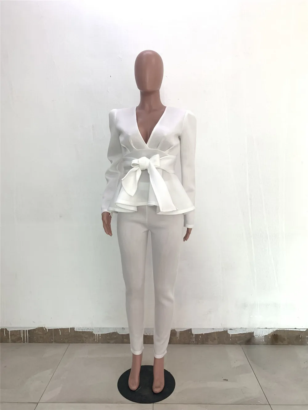 Женский осенне-зимний костюм-двойка с галстуком-бабочкой и брюками-карандаш