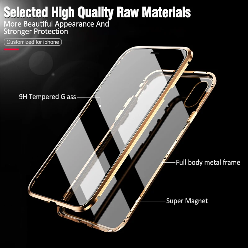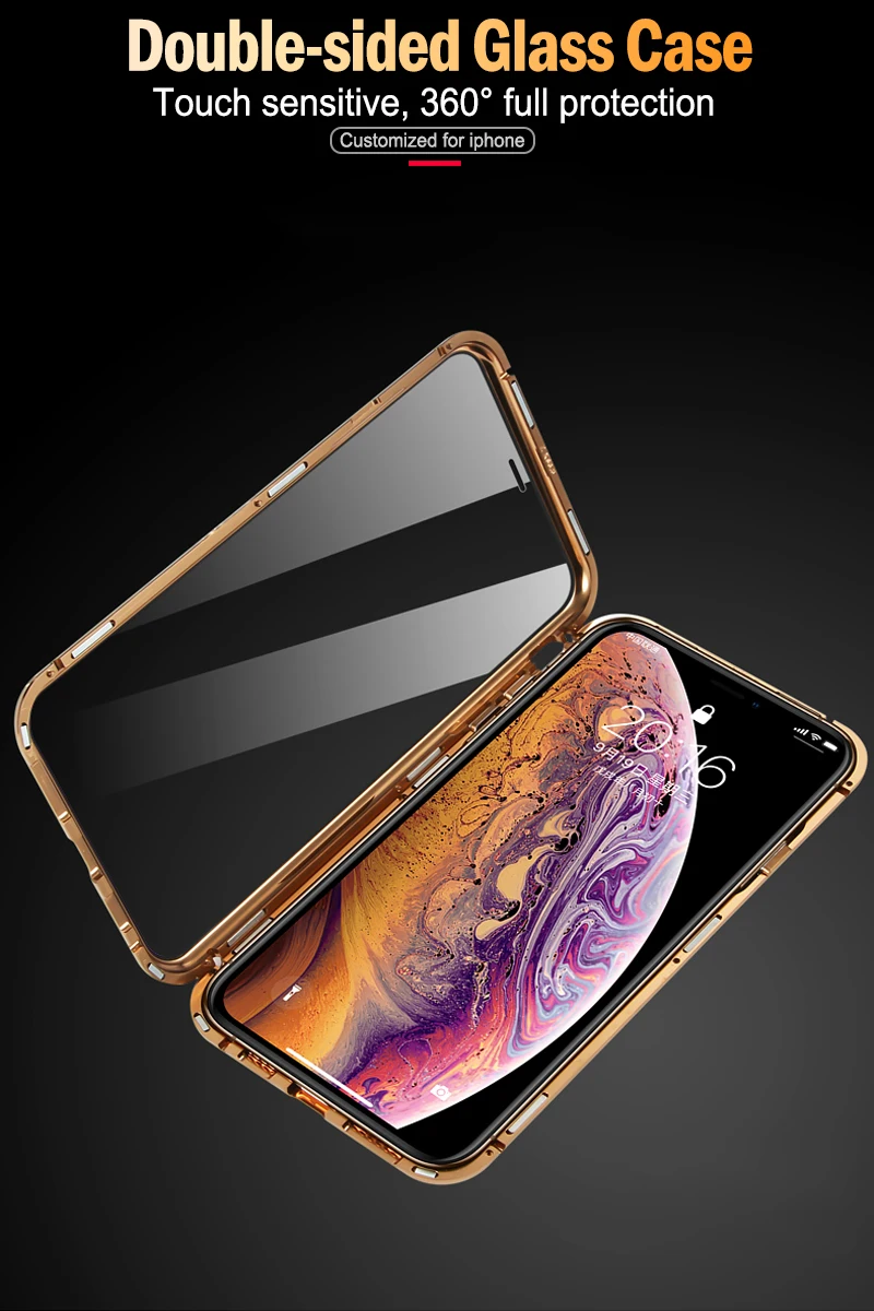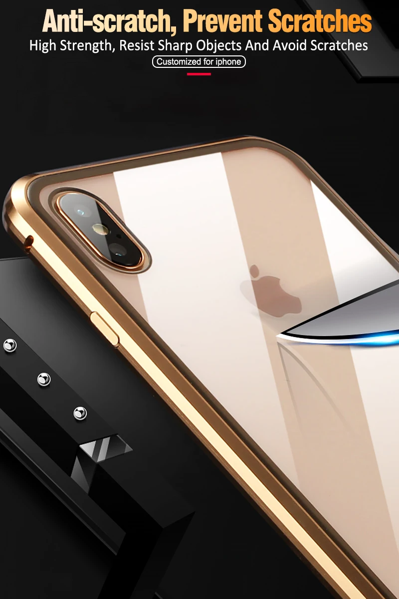 Роскошный Магнитный чехол из закаленного стекла для iPhone 11 Pro Xr Xs Max 6 6s 7 8 Plus, металлический двухсторонний прозрачный стеклянный чехол-бампер