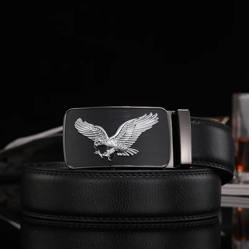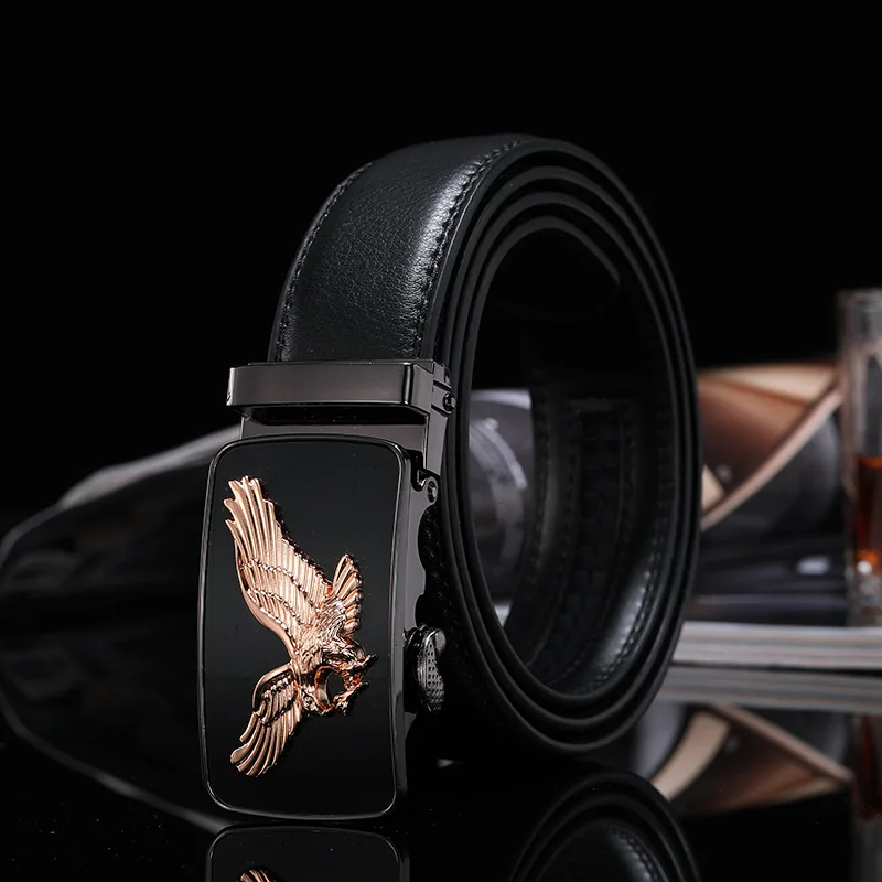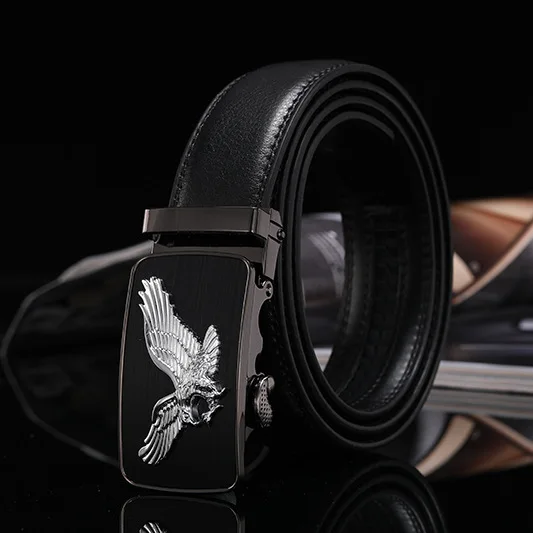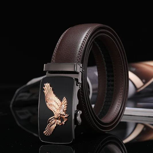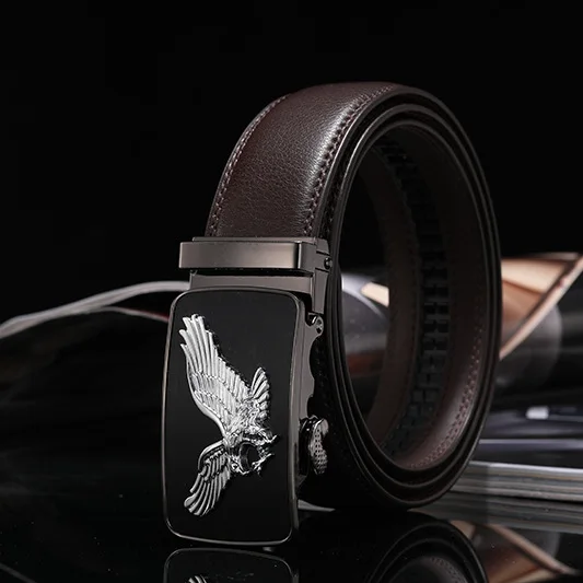 Ремень мужской из натуральной воловьей кожи, роскошный модный пояс с автоматической пряжкой, с храповым механизмом, с орлом, кофейныйчерный