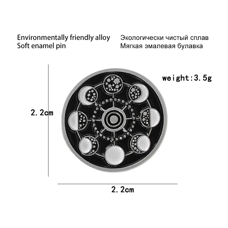Эмалированная брошь в виде черного круга для изменения Луны, полная луна, луна, полумесяц, нагрудная булавка, знак в форме Луны, рулетка, драгоценный камень