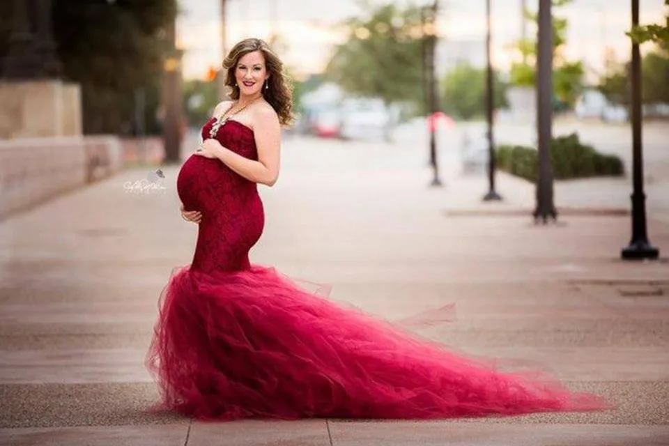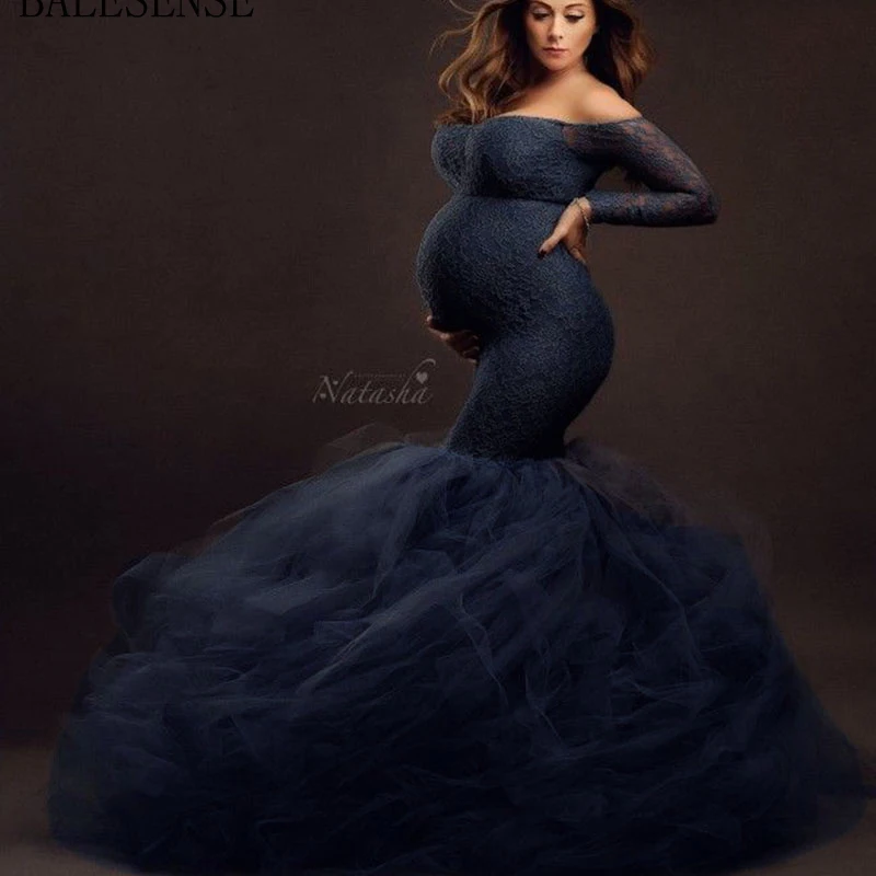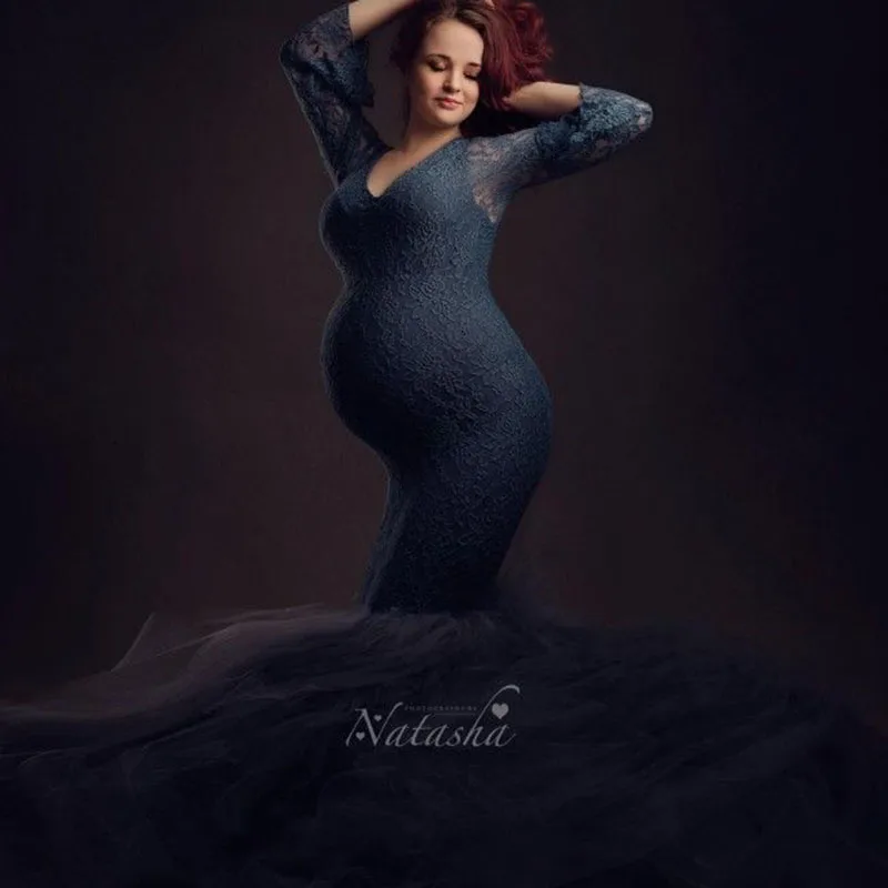 Платье для беременных с длинным рукавом, кружевное Макси-платье для беременных