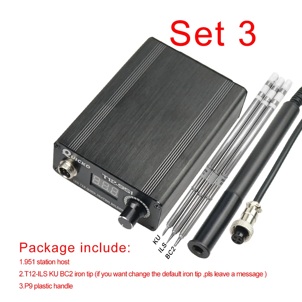 Светодиодный яльная станция с цифровым контроллером LED T12-951, электронный паяльник с пластиковой ручкой P9 и наконечниками утюга без кабеля питания