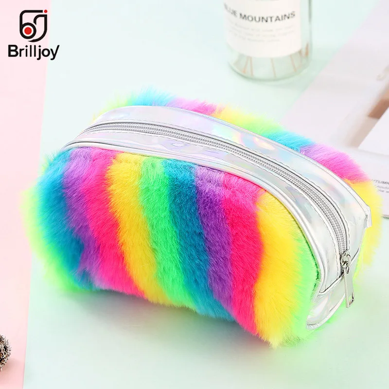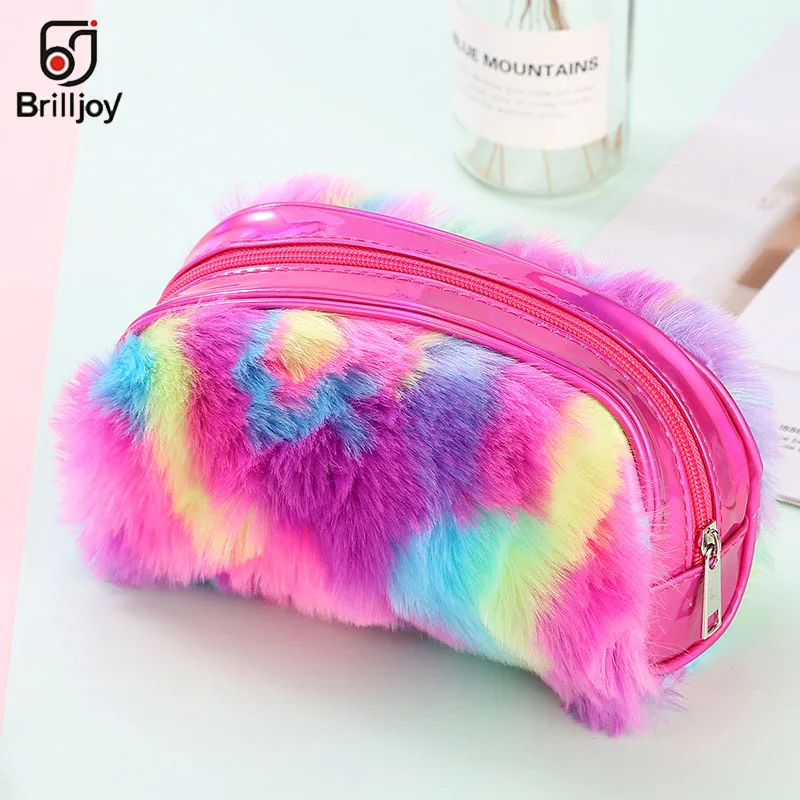 Женская косметичка с радужным мехом, разноцветный чехол-карандаш для монет, школьные принадлежности, подарочная сумочка для канцелярских товаров