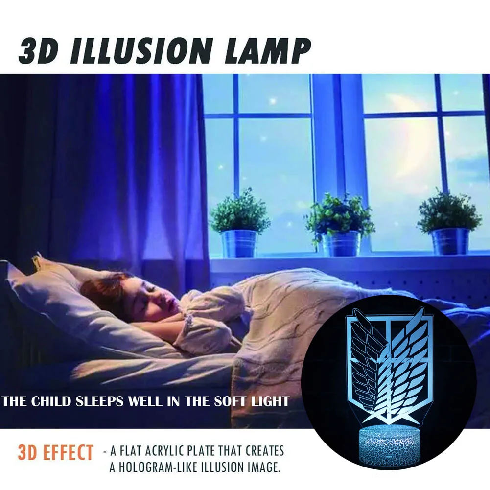 Атака на титанов, ночные светильники, логотип Scout Regiment, 3D иллюзия, светодиодный светильник для детской спальни, аниме, декоративные светильники с пультом дистанционного управления