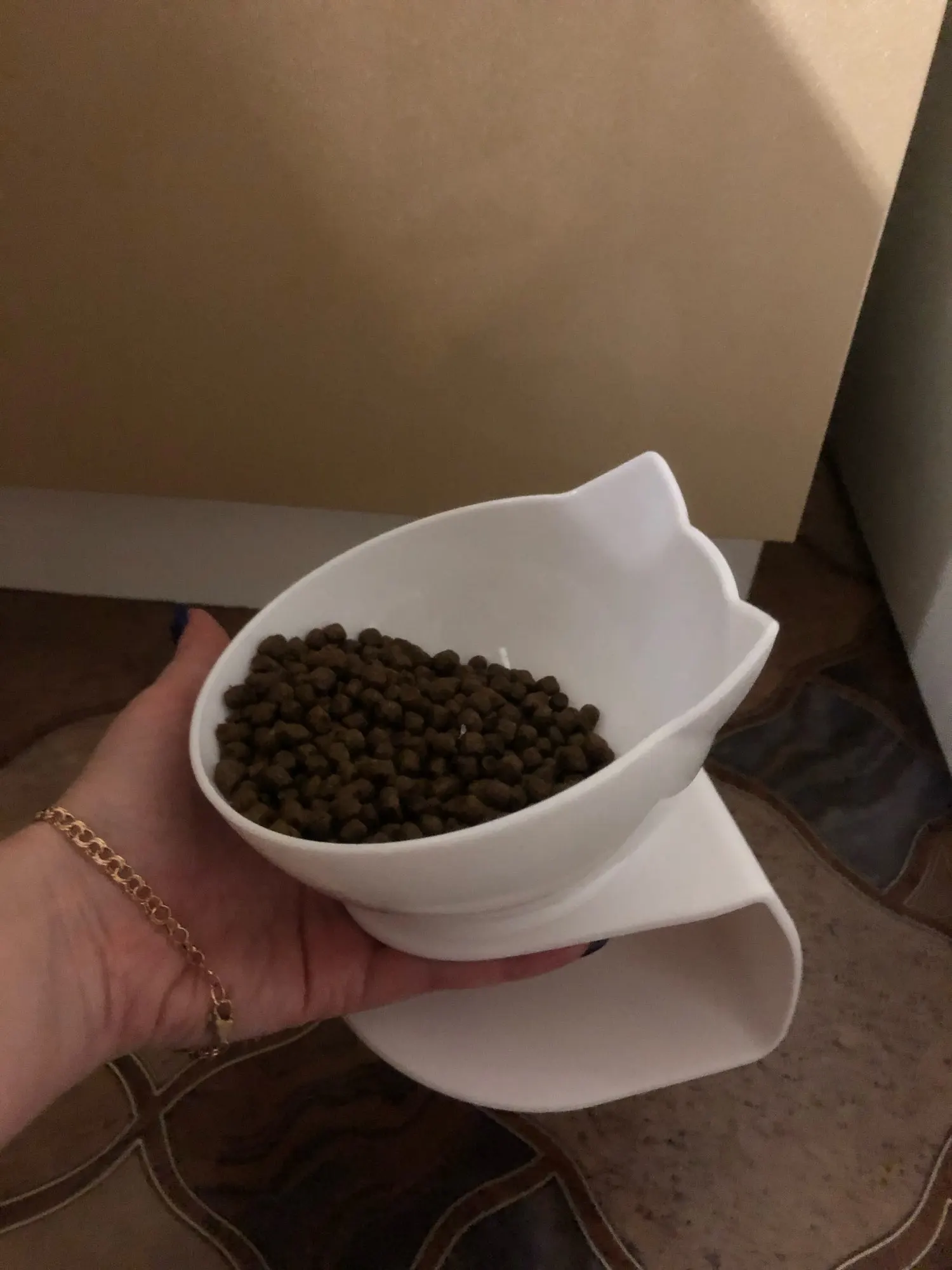 замечательные мисочки) Теперь кошка не разбрасывает еду по всему полу за счёт того, что мисочка под наклоном.