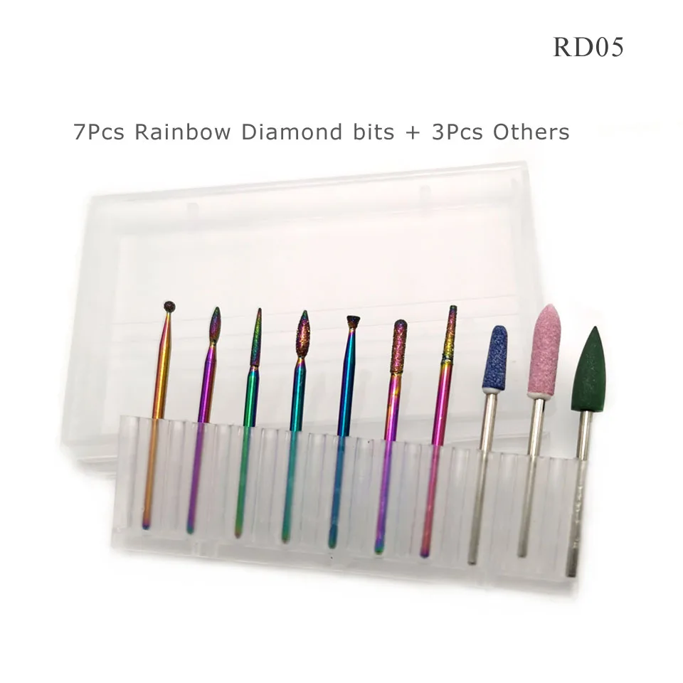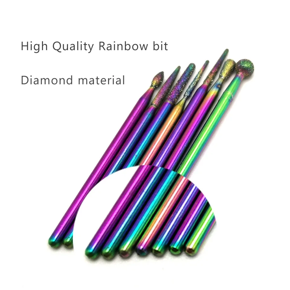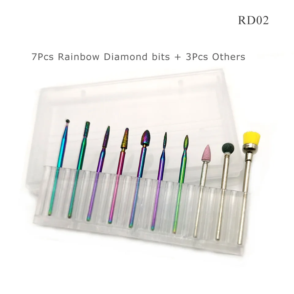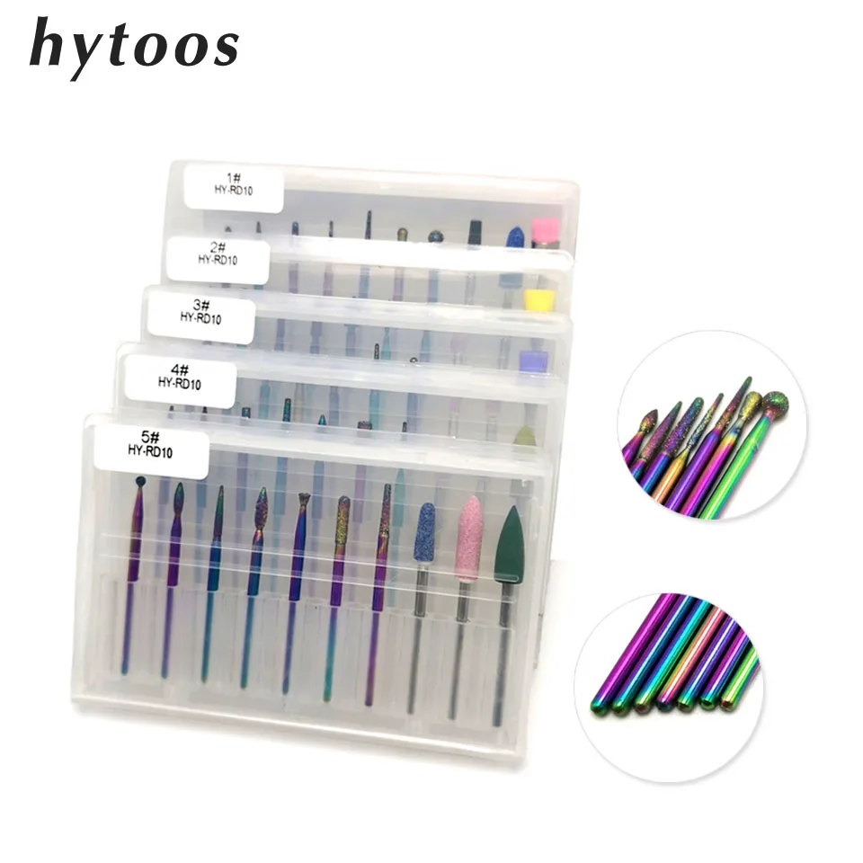 Набор фрез для ногтей HYTOOS, 10 шт., радужные алмазные фрезы 332 дюйма для маникюра, роторные фрезы для кутикулы, аксессуары для сверл