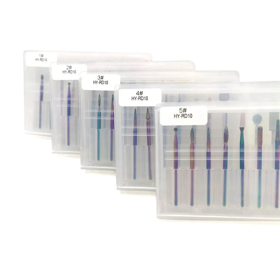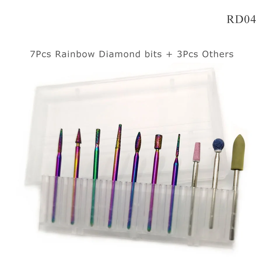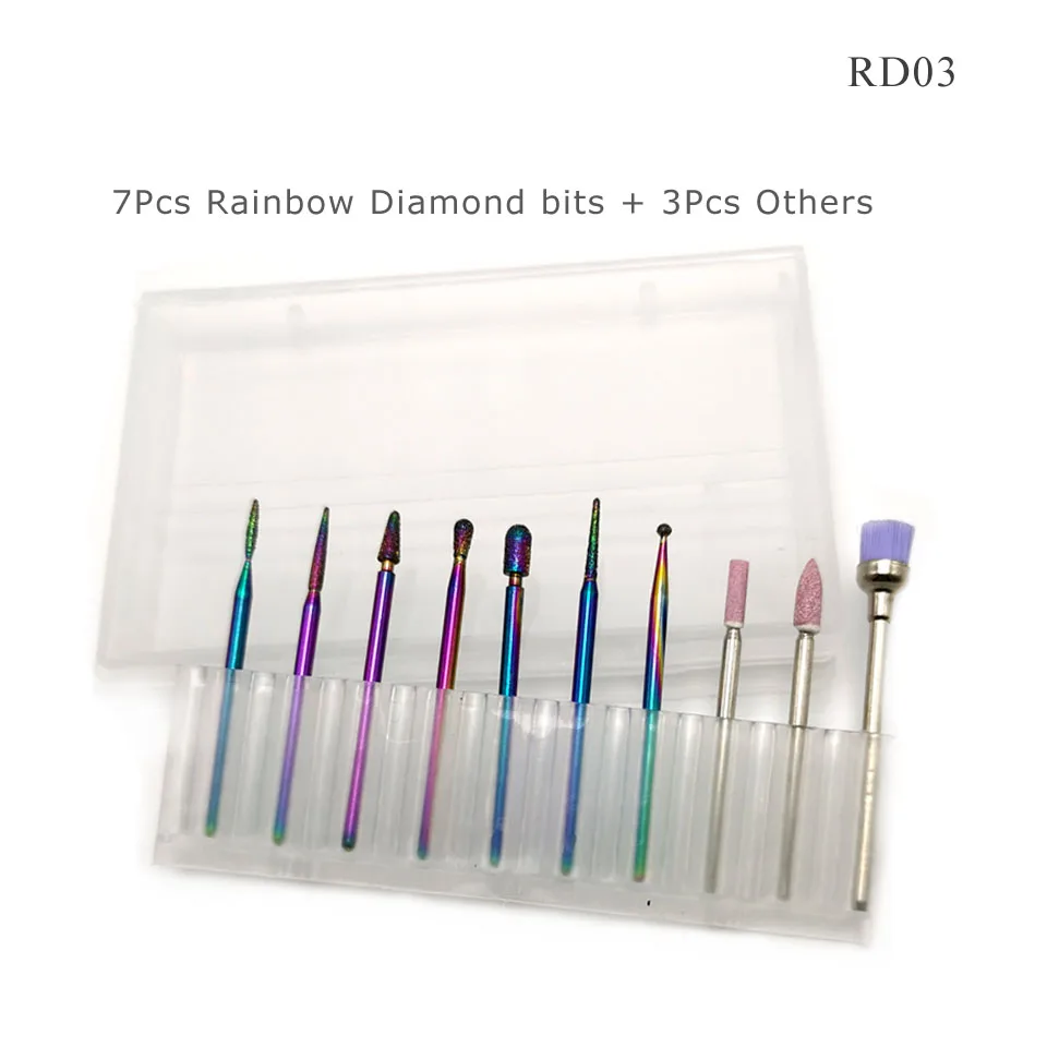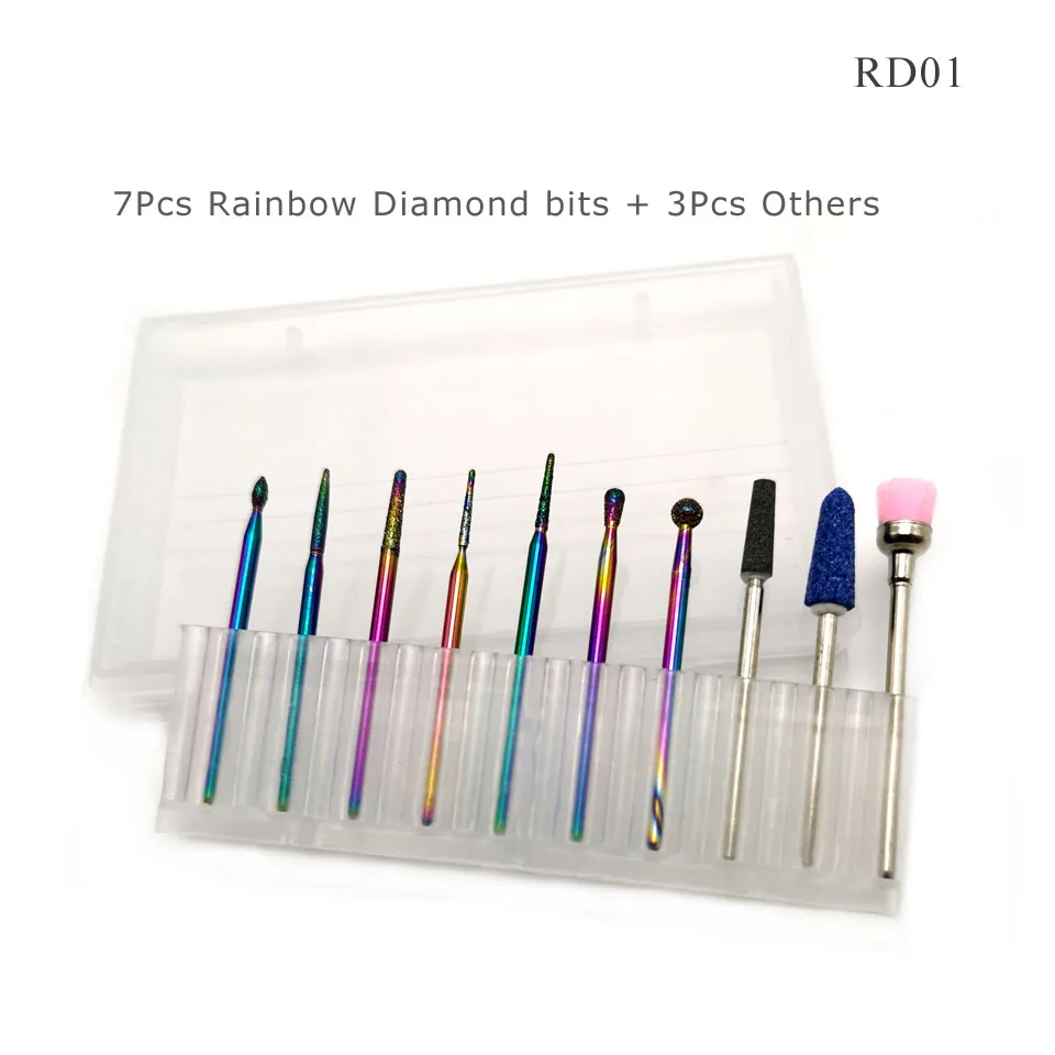 Набор фрез для ногтей HYTOOS, 10 шт., радужные алмазные фрезы 332 дюйма для маникюра, роторные фрезы для кутикулы, аксессуары для сверл
