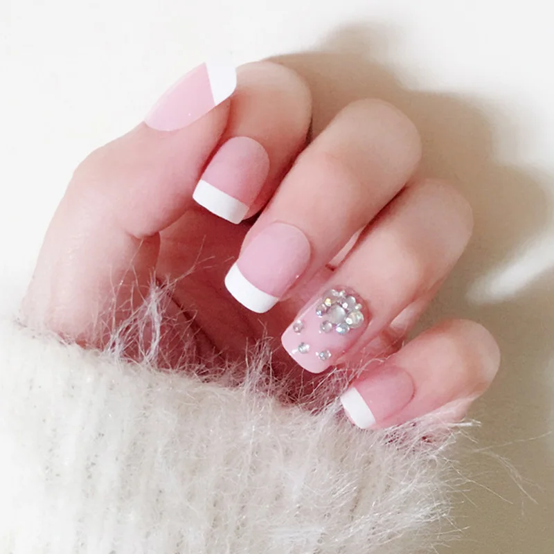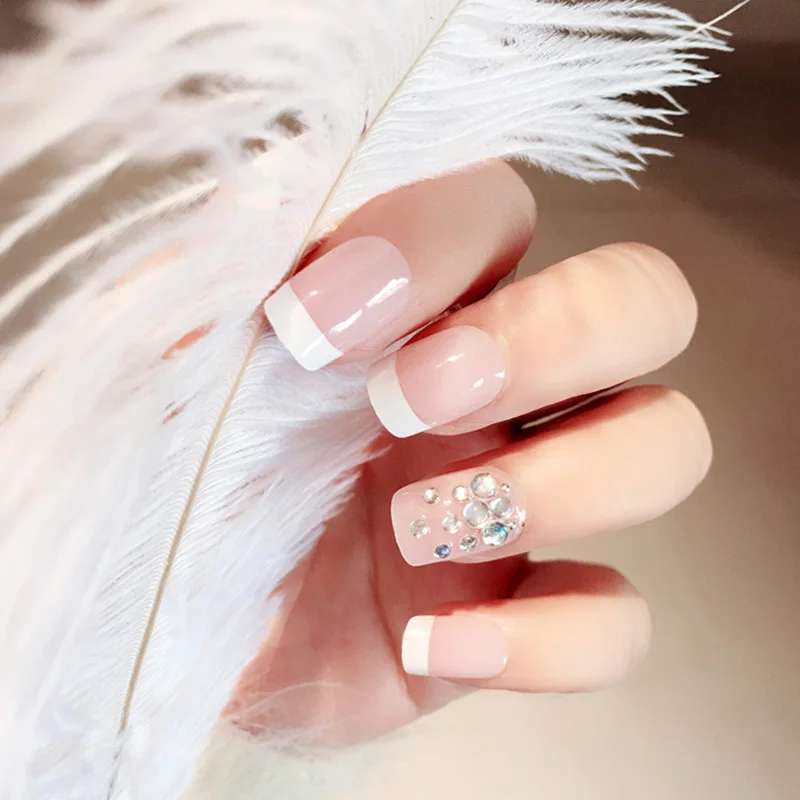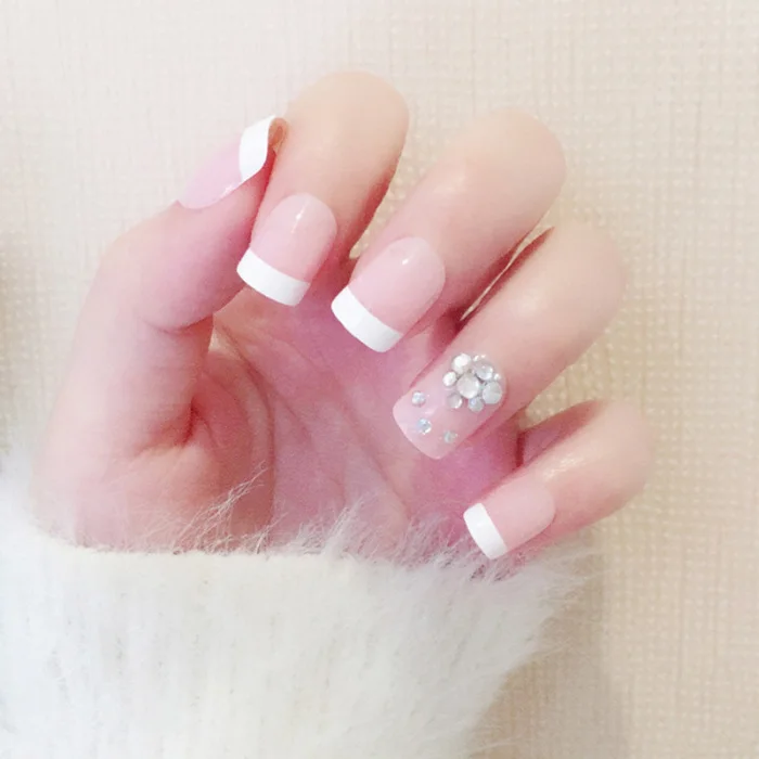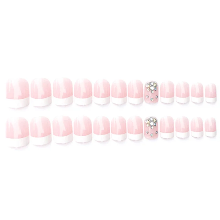 Новые 24 шт. накладные ногти, французский дизайн, накладные ногти, полное покрытие, ногти с клеем SCI88