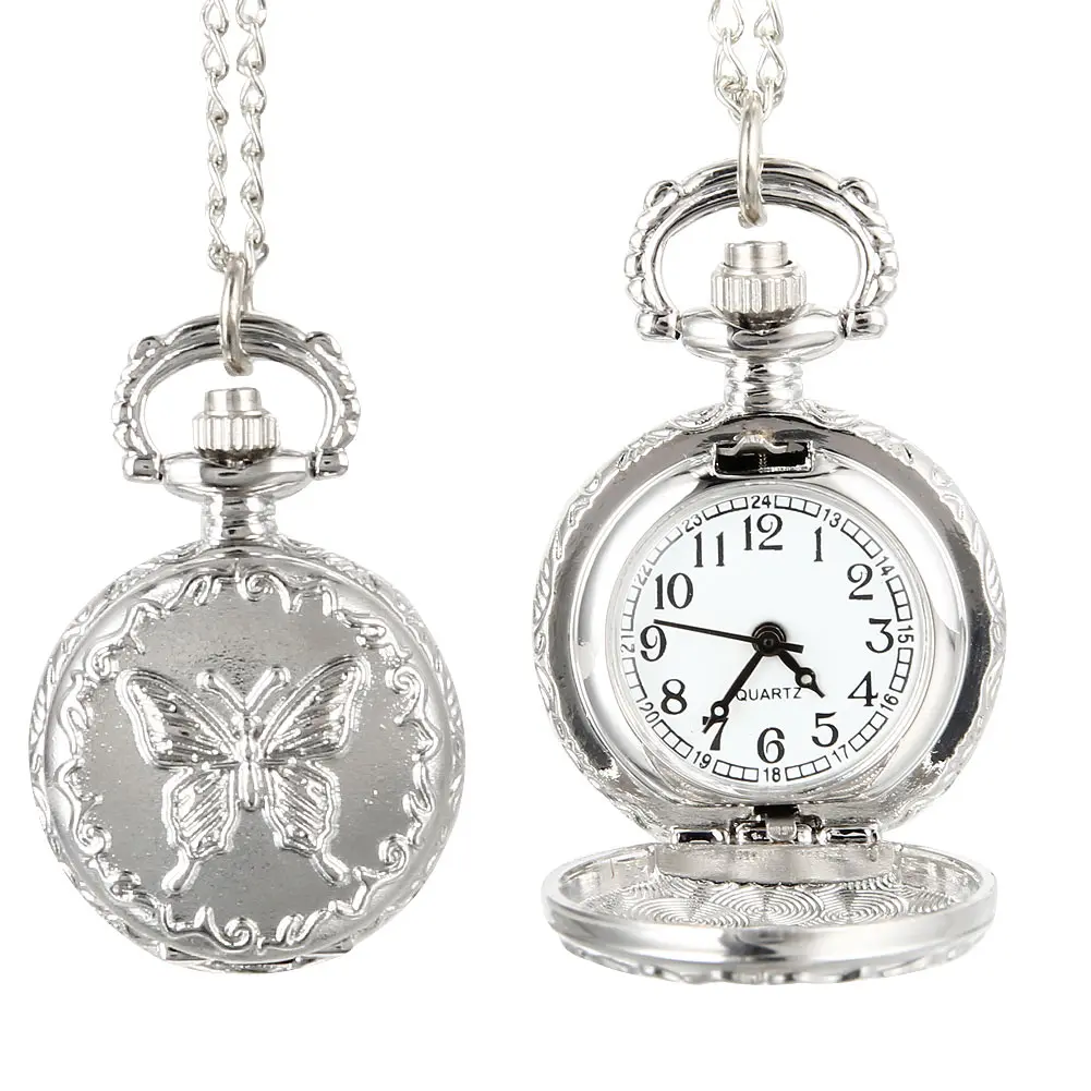 Модные Винтажные кварцевые карманные часы, сплав, цветы, Бабочка, для женщин, девушек, ожерелье, подвеска, свитер, цепь, часы, подарки, EIG88
