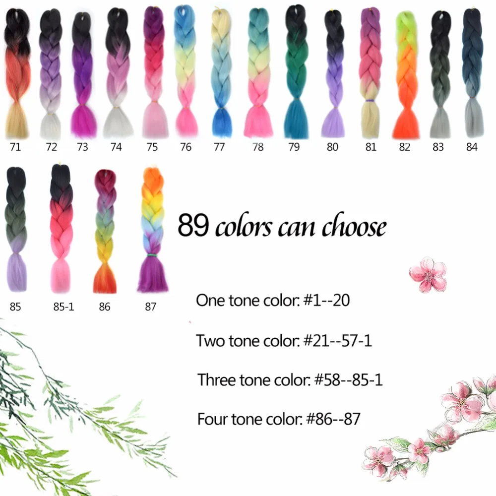Синтетические волосы для наращивания, Джамбо плетеные косички, 24 дюйма, с эффектом омбре, для женщин, розовые, фиолетовые, красные, светлые, серые, радужные волосы