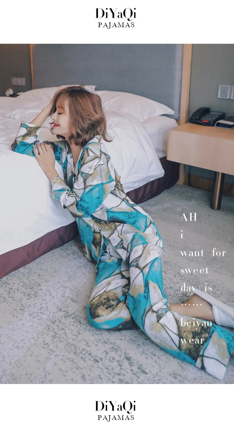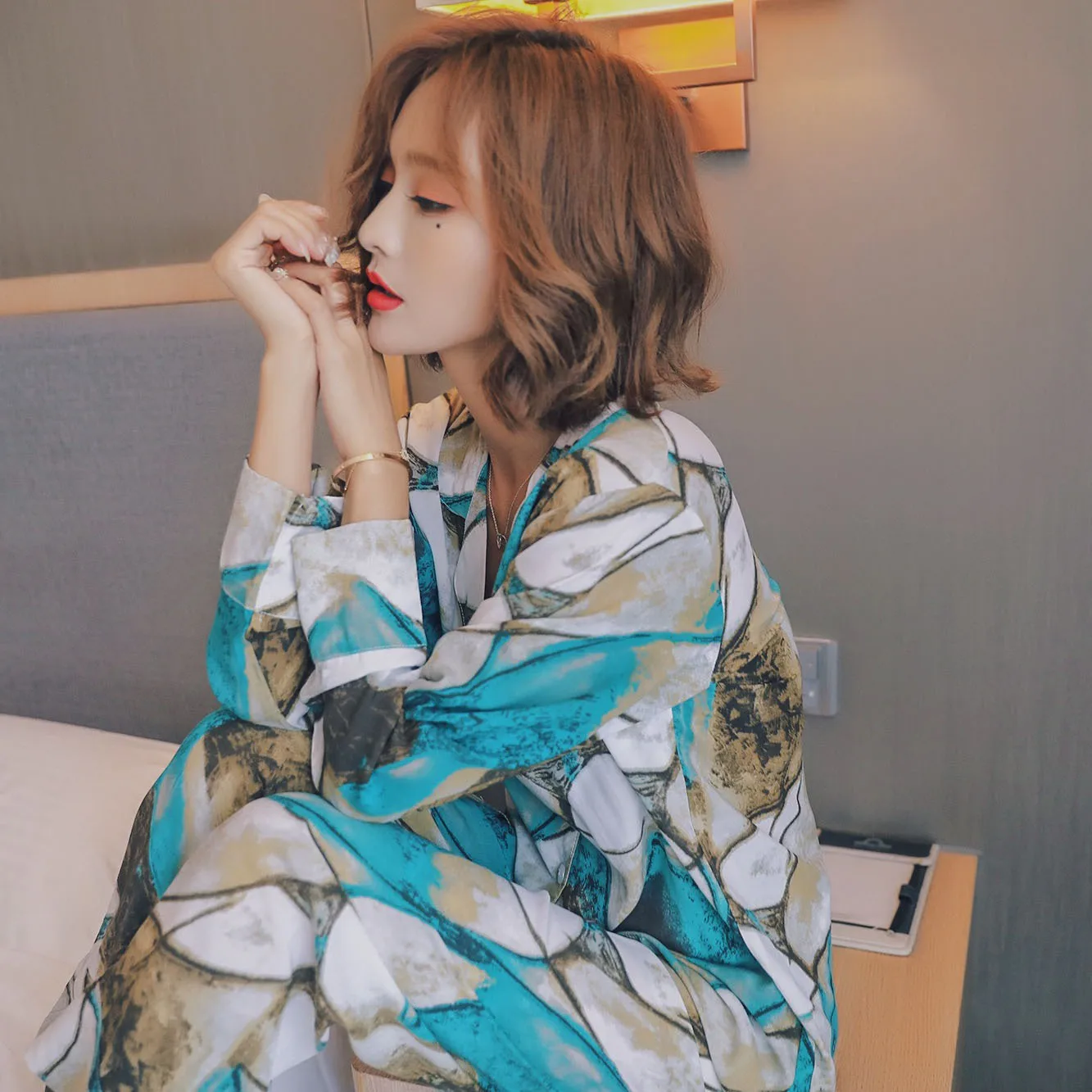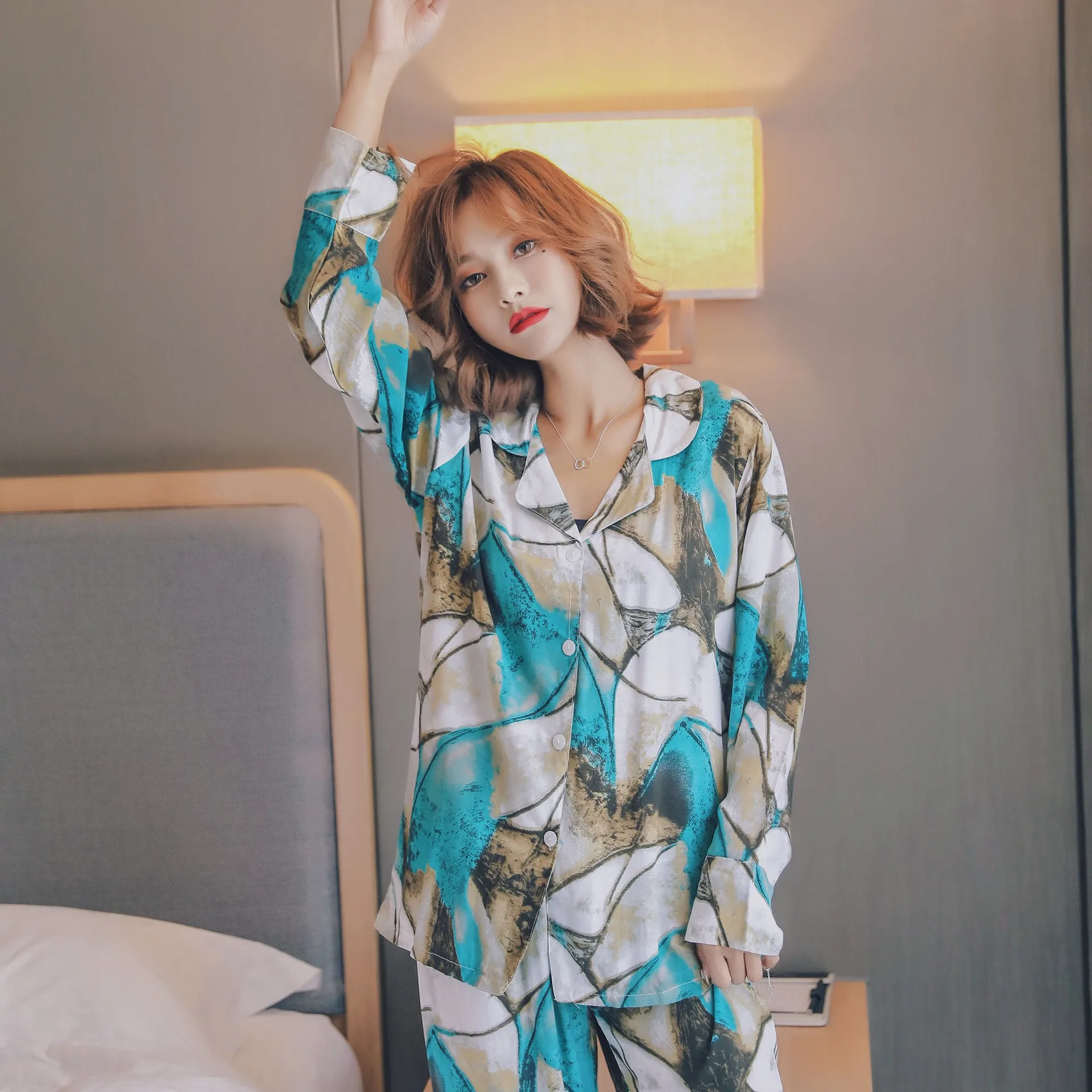 Женский пижамный комплект с длинным рукавом, удобная Пижама размера плюс с v-образным вырезом и принтом из вискозы, домашняя одежда размера плюс, осень