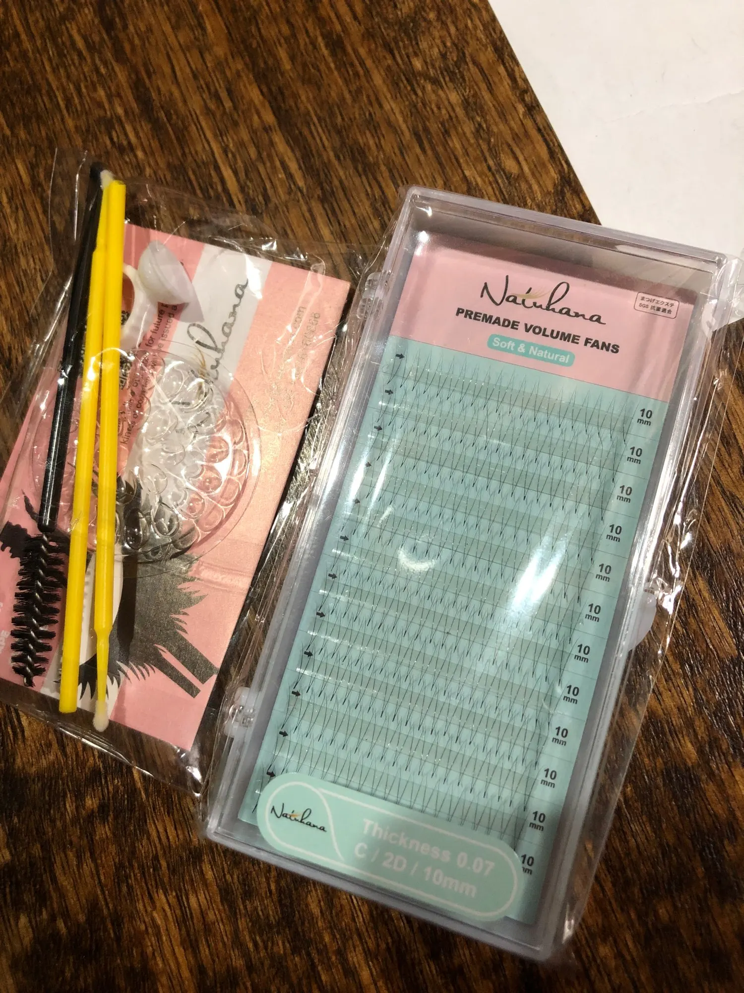 Очень хорошие пучки, просто замечательные. Заказывала 0.07, потому что 3д и на курсах так учили. Но эти реснички очень тоненькие, тоньше чем собственные. Не стоит пачкать глаза клеем ради незаметных ресничек. Берите 1.0. Также подарили палочки для праймера, щёточку и колечко для краски. Хороший изготовитель, хороший магазин.