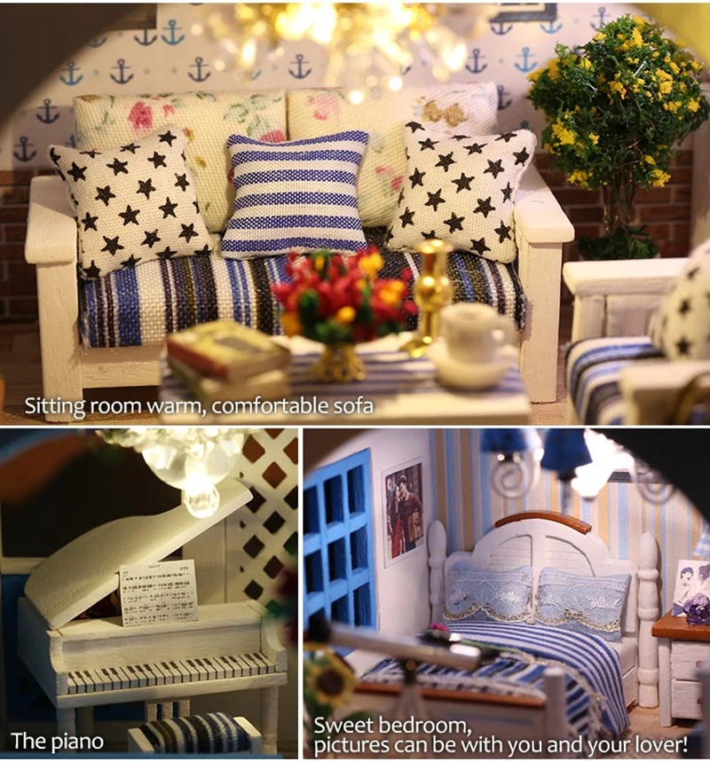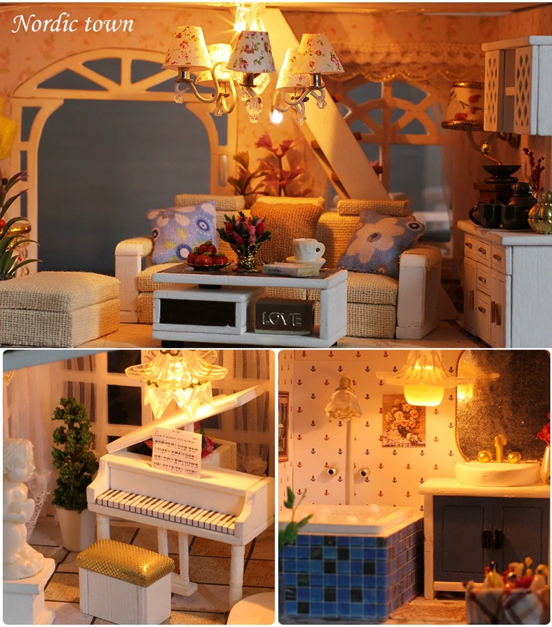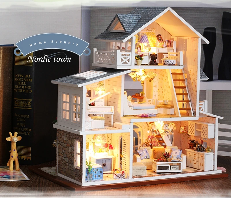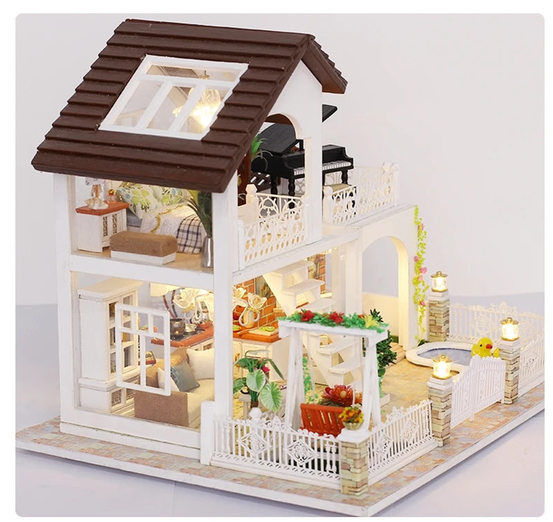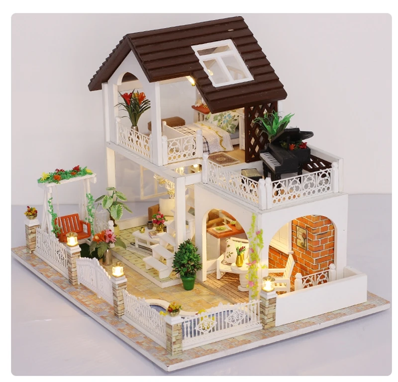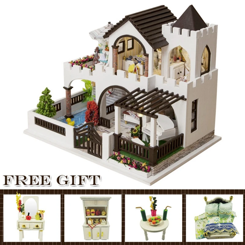 Рождественский подарок, кукольный домик сделай сам, деревянный кукольный домик, миниатюрный кукольный домик, комплект мебели, музыкальный светодиодный домик, игрушки K16, игрушка