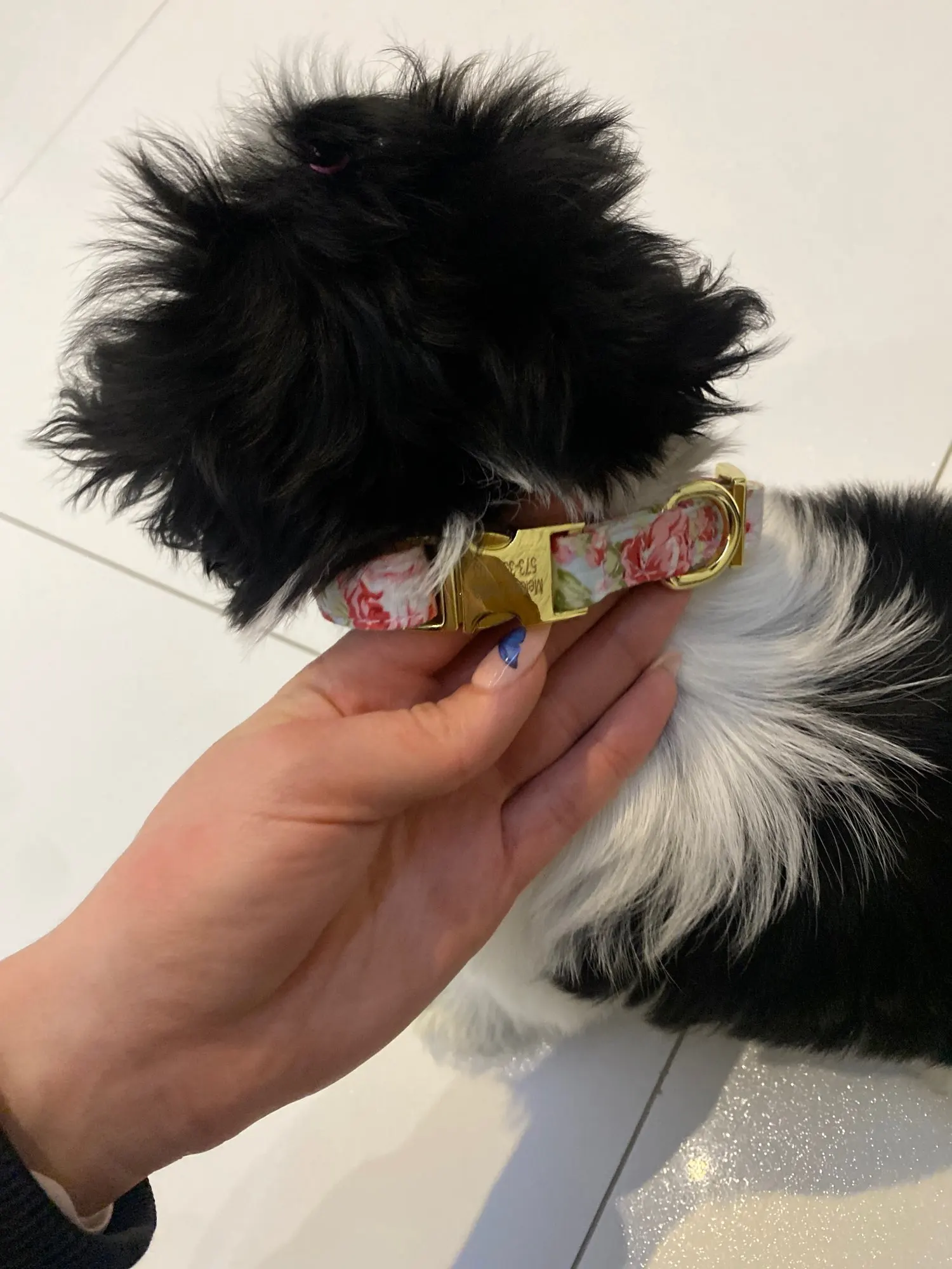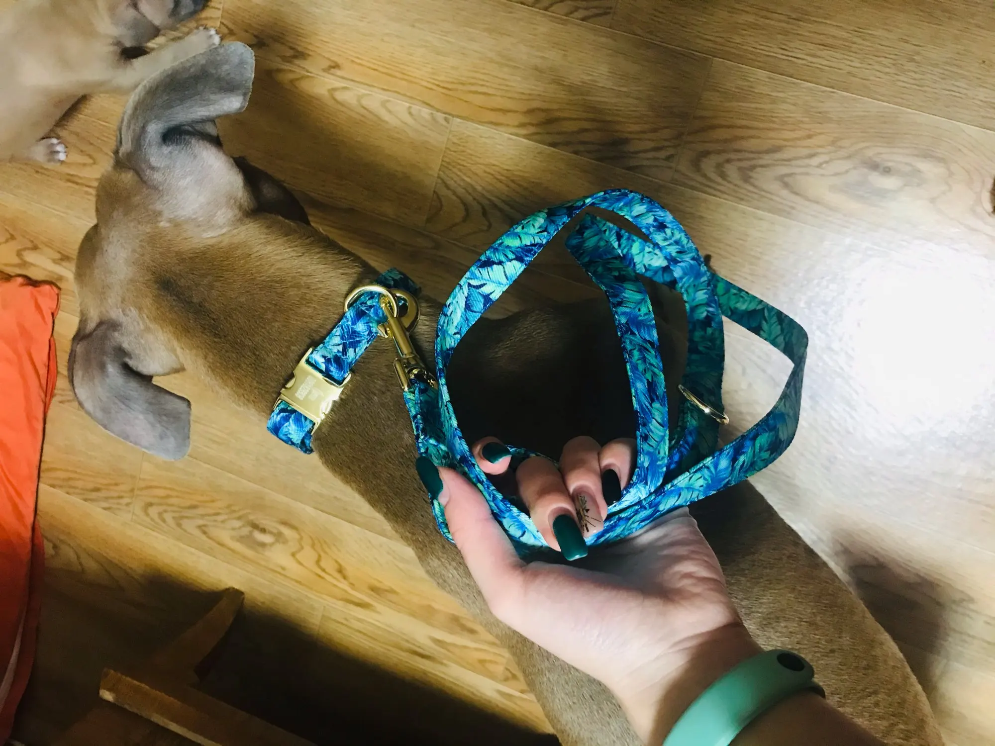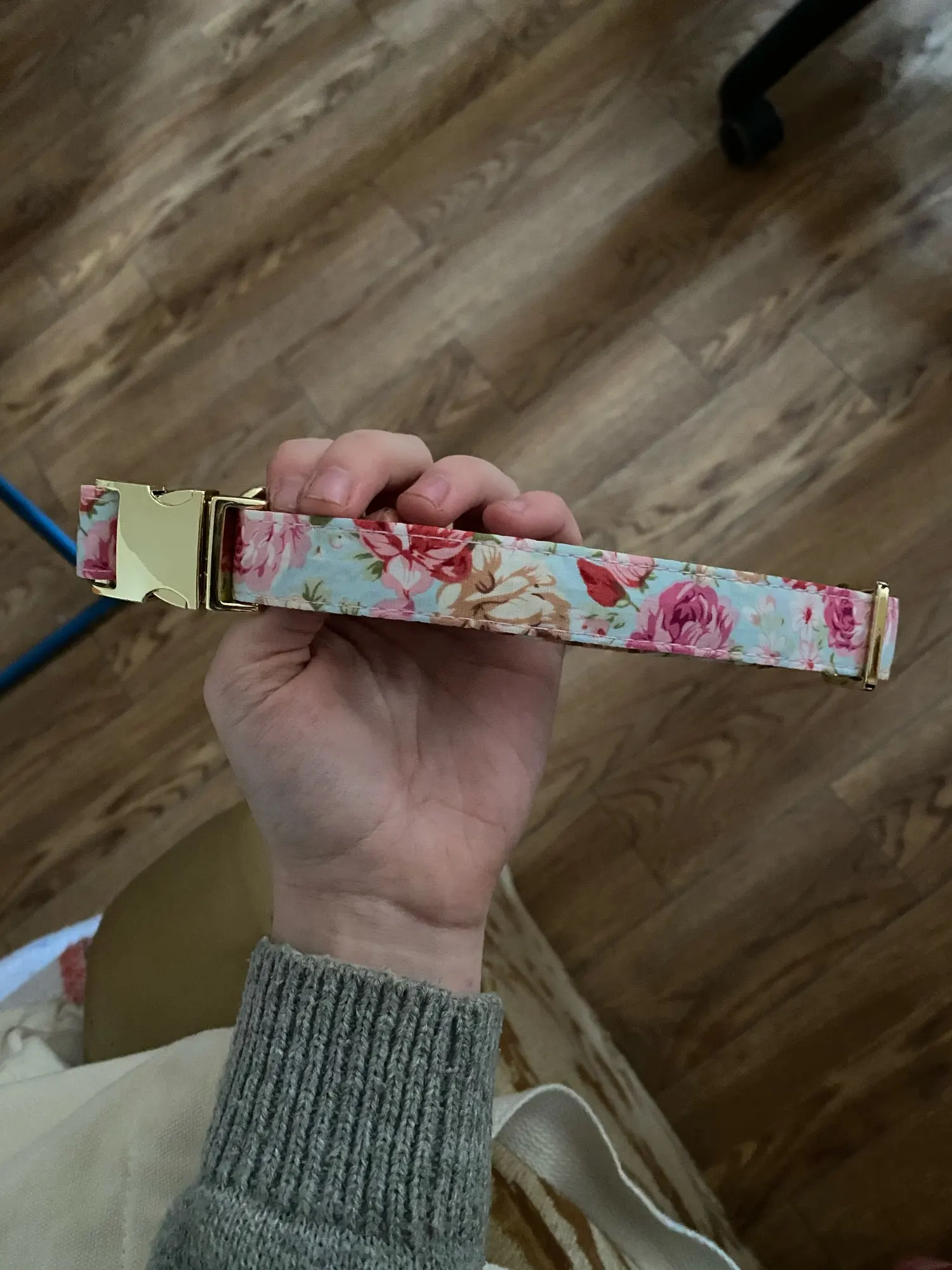 Я заказываю поводок после того, как заказал подходящий ошейник. Я не знаю, что есть комплект, который я могу заказать, пока не заказал воротник. Теперь мне нужен ремень безопасности. В цвете, который подчеркнет цветы на воротнике и поводке для моей дедушки
