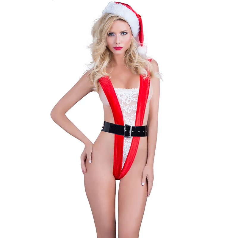 Красное сексуальное рождественское женское платье, шапка Санта Клауса, нижнее белье, рождественское нижнее белье, женское боди, Эротическое рождественское женское белье