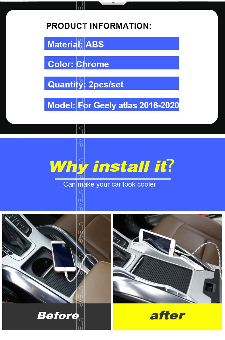 Vtear для для Джили Атлас Geely Atlas Emgrand NL-3 Proton X70 Автомобильная Центральная консоль подлокотник контейнер Органайзер чехол аксессуары полоса