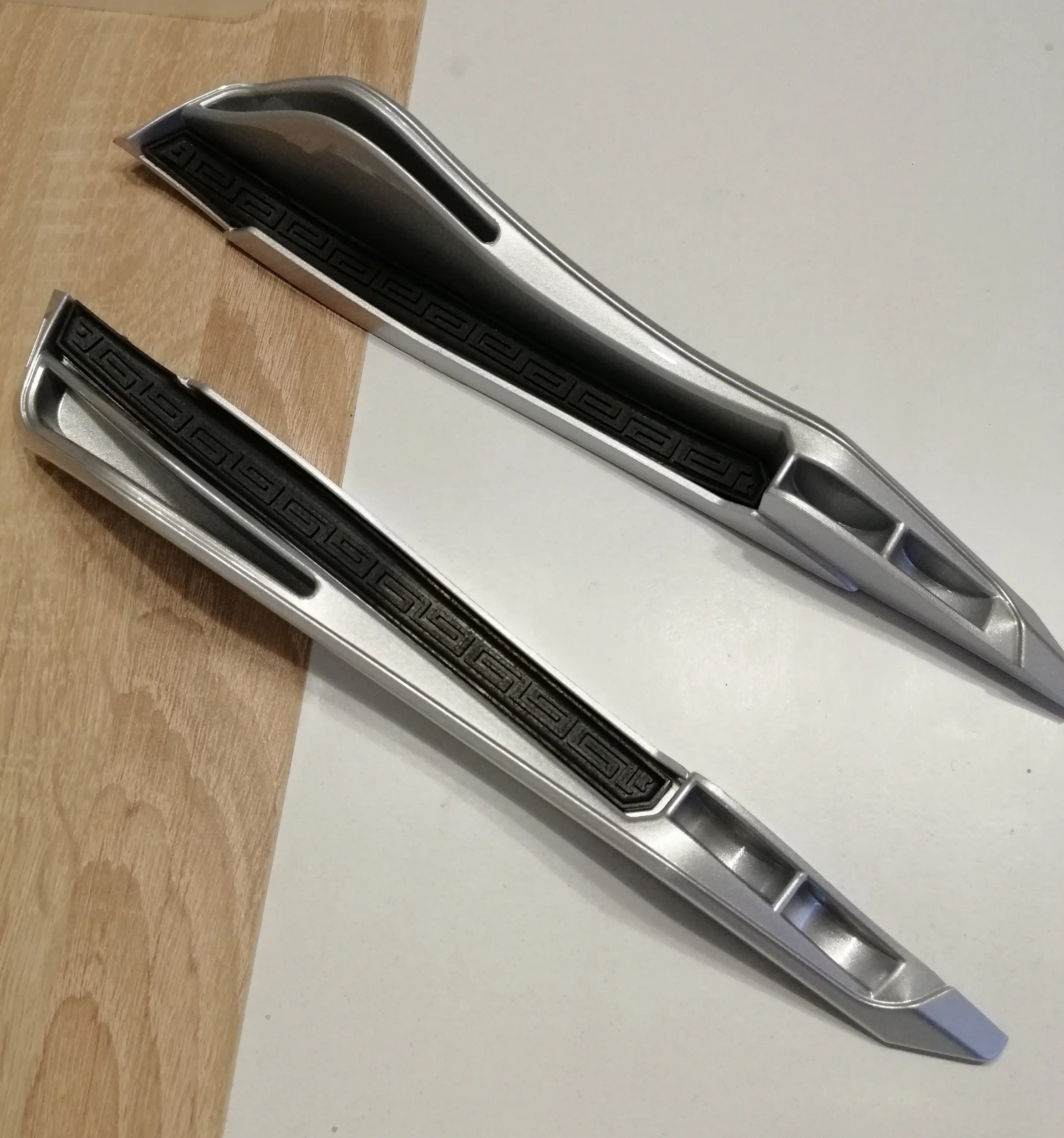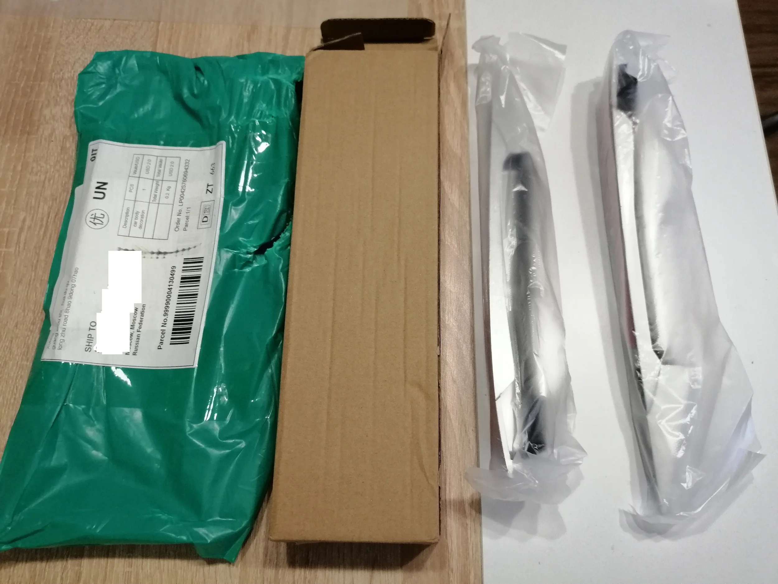 Екатеринбург - две недели. Упаковано в жесткий картон, доехало без повреждений. Исполнено достойно. Внешний вид немного отличается от ручек, но в целом - годится! Поверхность - лакированная, но под лаком видна шероховатость "с искоркой" - мне нравится. Скотч -3М.