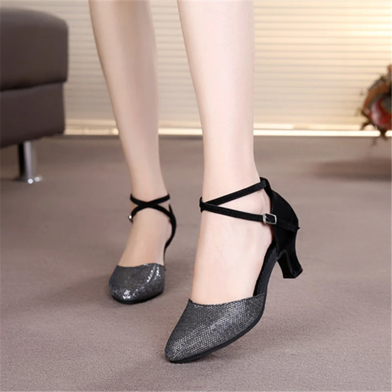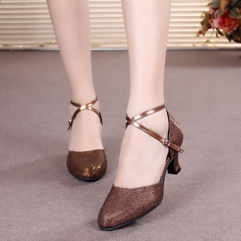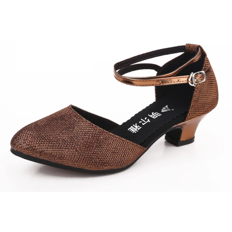 Хит продаж среди женской девичьи бальные платье для латинского Танго, обувь для танцев на высоком каблуке 3,5/5 см по выгодной цене с доставкой, цвет серебристый, золотистый и черный коричневого цвета WZSP22-1