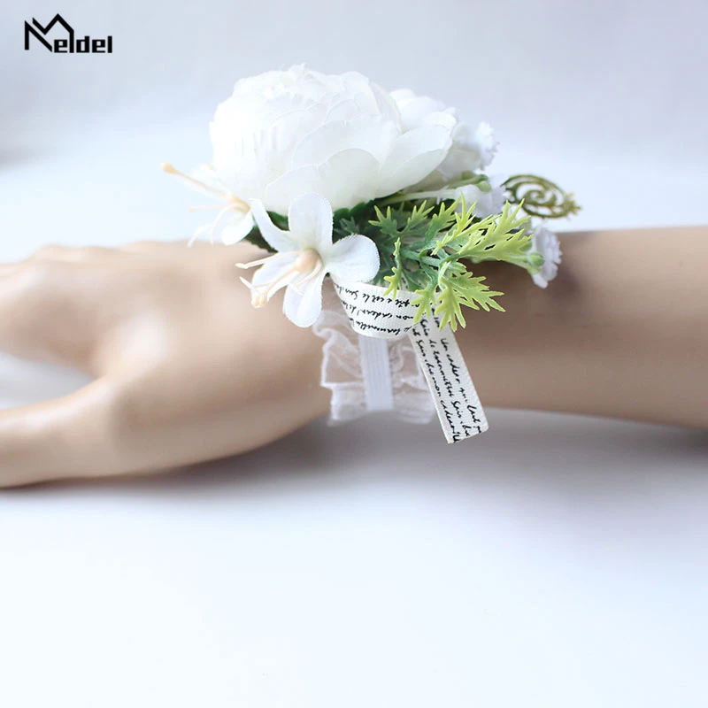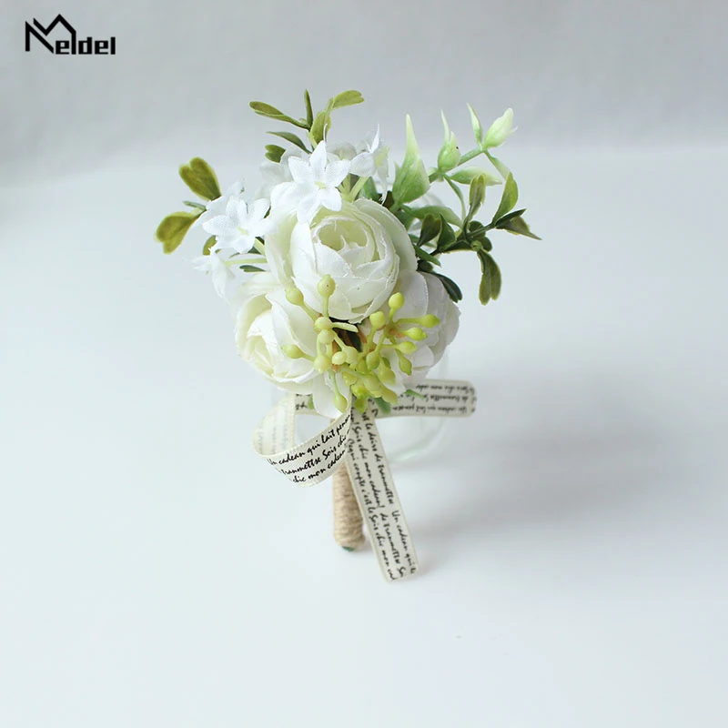 Meldel наручные корсаж Свадебные бутоньерки Искусственные Шелковые Розы Свадебные наручные цветок девушка браслет мужской корсаж Свадебные бутоньерки