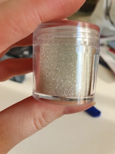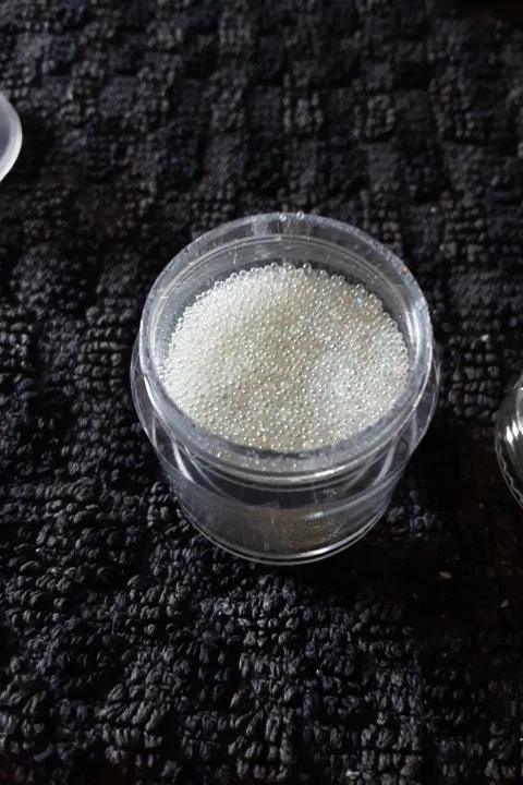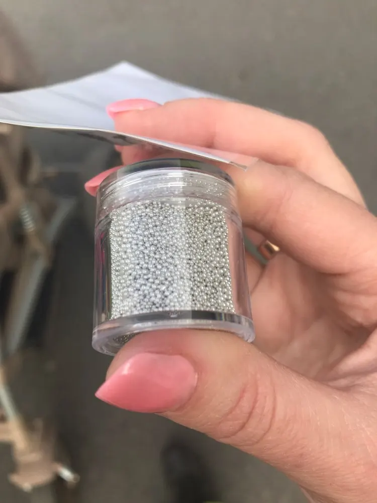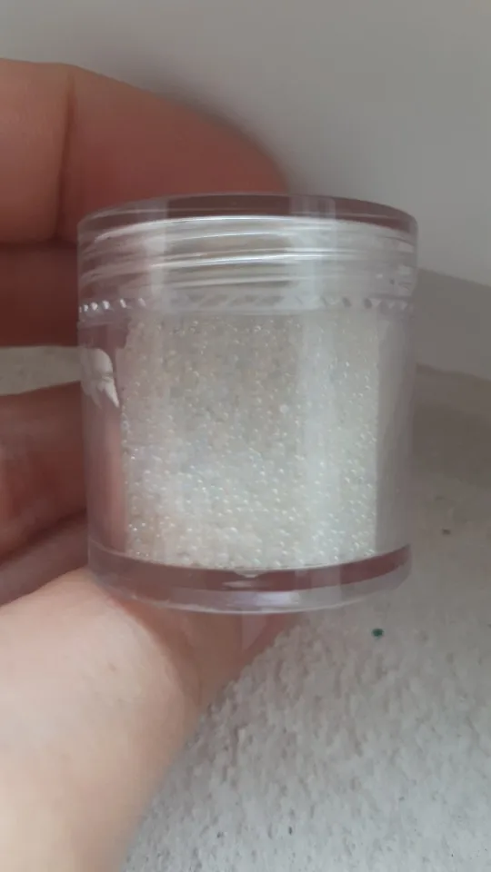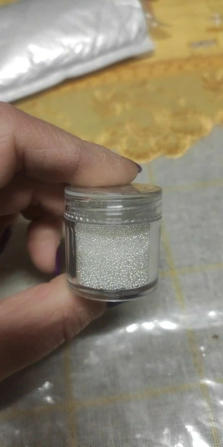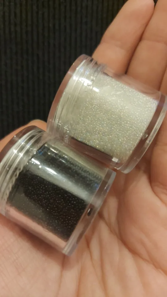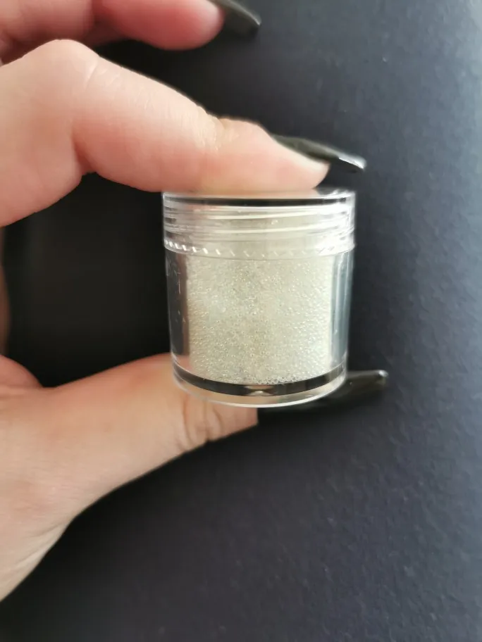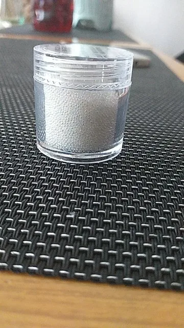 Красивые ровные шарики. Дают атласный блеск. Но цвет не кипельно белый. Немного сероватый