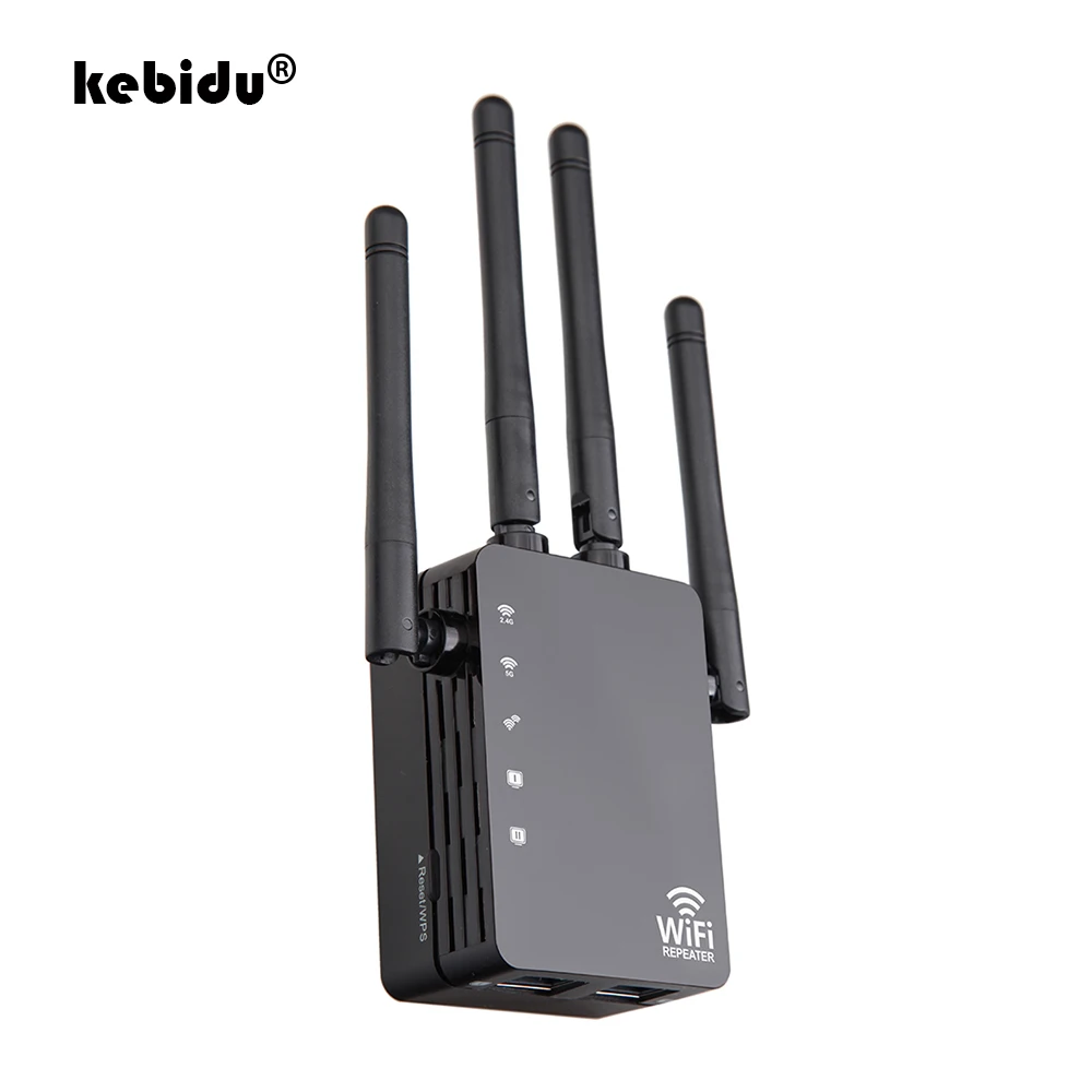 Kebidu Беспроводной ретранслятор Wi-Fi 2,4G5G двухдиапазонный AC 1200 Мбитс 4 антенны мост усилитель сигнала проводной маршрутизатор Wi-Fi доступ