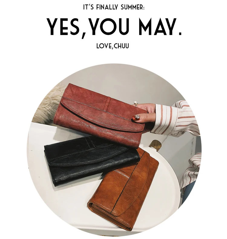 Винтажный кошелек тройного сложения, Женский Длинный кошелек из искусственной кожи, женский клатч, сумочка для телефона, для девушек
