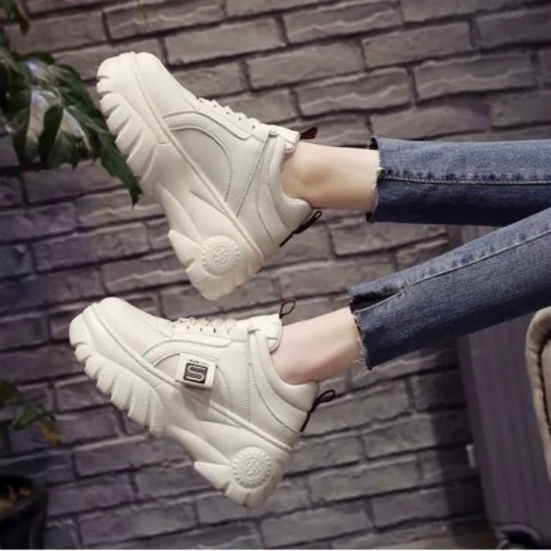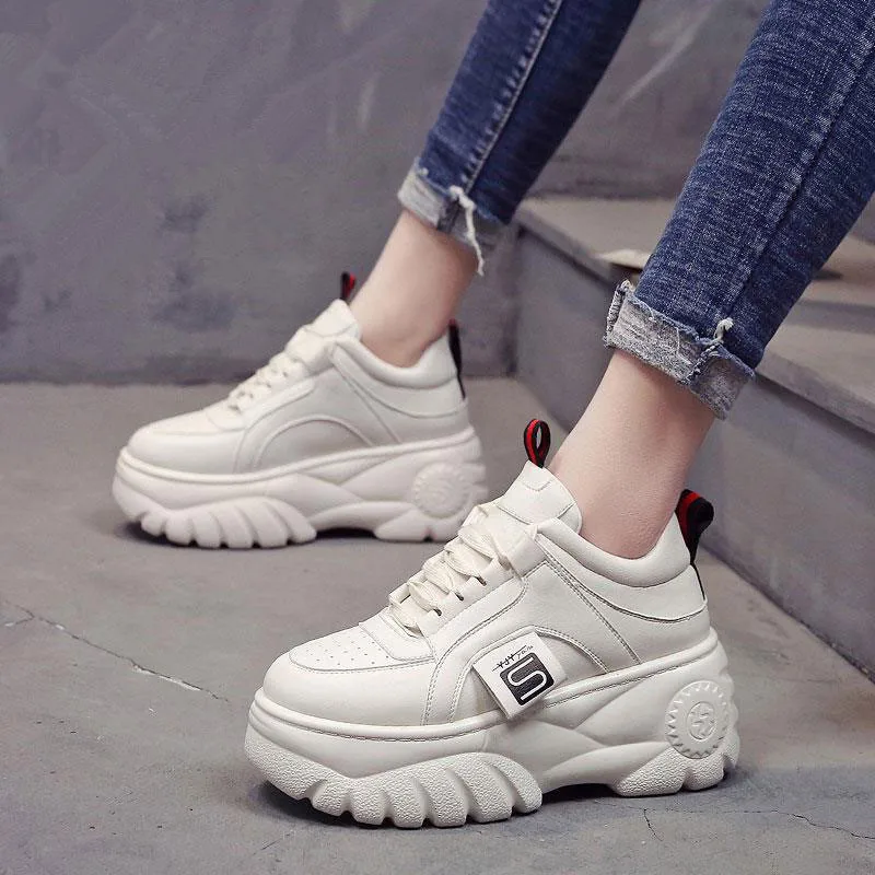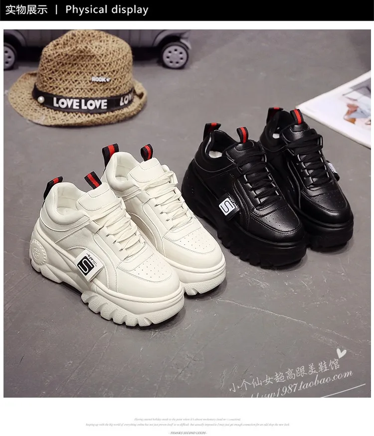 Кроссовки женские на платформе, дышащие, массивная подошва, черные, белые, сезон осень-зима