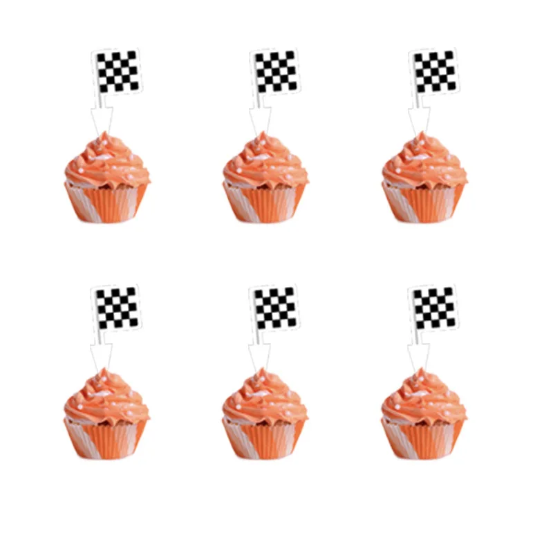 Гоночные автомобили черно-белый флаг бумажный Топпер на торт черный...